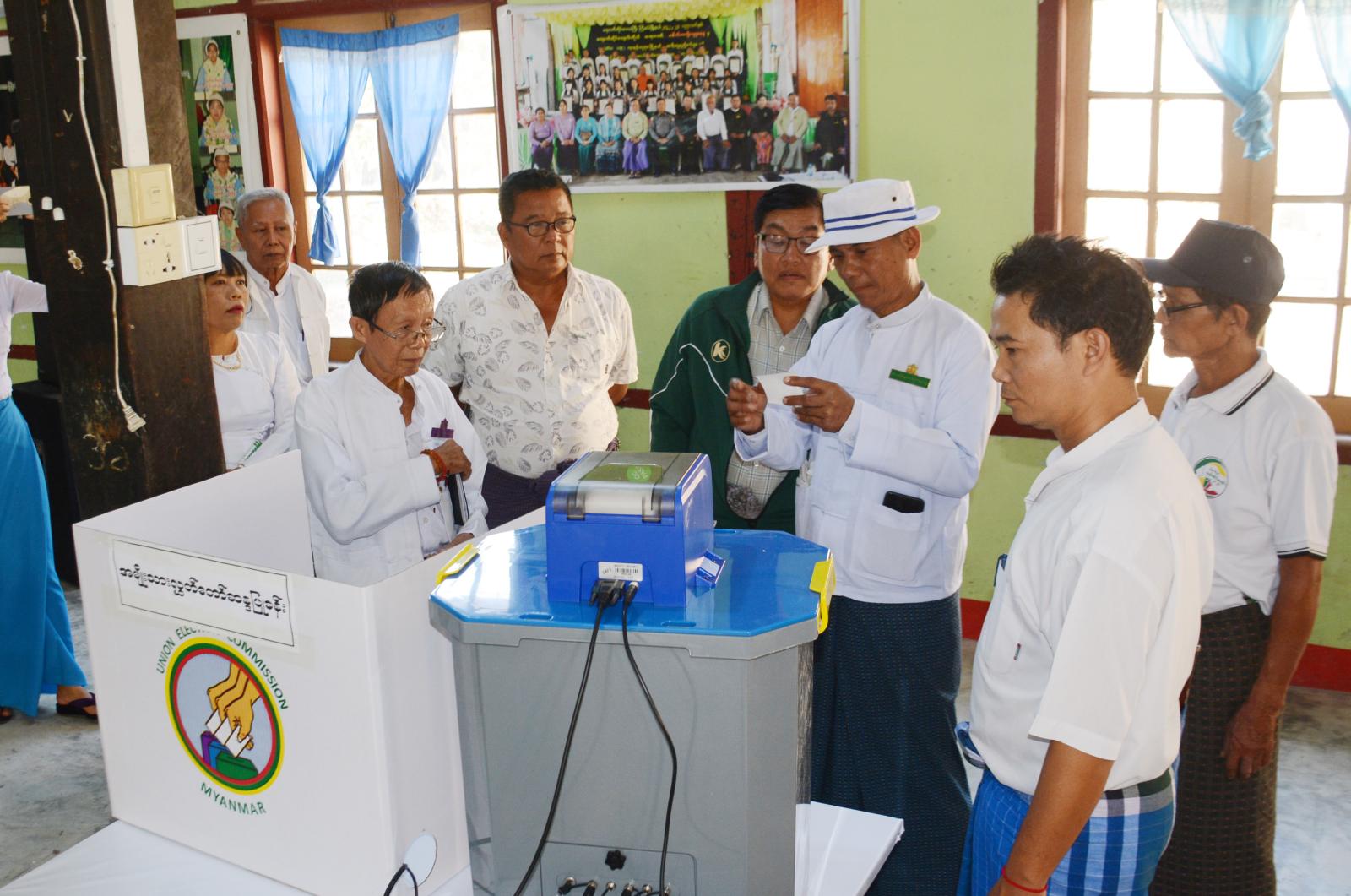 ကြံခင်းမြို့ပေါ်ရပ်ကွက် (၃)ခုရှိ မဲရုံ (၆)ရုံတွင် အီလက်ထရောနစ်မဲပေးစက် (MEVM) တပ်ဆင်ဆောင်ရွက်ထားရှိမှု၊ မဲရုံဖွဲ့စည်းပုံနှင့် ဆန္ဒပြုခန်းများပြင်ဆင်ထားရှိမှုအားတို့အား တိုင်းဒေသကြီး ရွေးကောက်ပွဲကော်မရှင်အဖွဲ့(ခွဲ)အဖွဲ့ဝင် ဦးသန်းထွန်း၊ မြို့နယ်ရွေးကောက်ပွဲကော်မရှင်အဖွဲ့(ခွဲ)ဥက္ကဋ္ဌ ဦးလှိုင်ဝင်းနှင့်အဖွဲ့ဝင်များက ကြည့်ရှုစစ်ဆေးပြီး၊ လွှတ်တော်အလိုက် အီလက်ထရောနစ် မဲပေးစက် (MEVM) ဖြင့် ဆန္ဒမဲပေးရာတွင် ပါတီများမှန်ကန်မှုရှိစေရေး ပါတီကိုယ်လှယ်လောင်းများ ရှေ့မှောက်တွင် စမ်းသပ်မဲပေးခြင်းများကိုဆောင်ရွက်ကြသည်။ ထို့နောက် တိုင်းဒေသကြီး ရွေးကောက်ပွဲ ကော်မရှင်အဖွဲ့(ခွဲ) အဖွဲ့ဝင်က မဲရုံမှူး၊ ဒုမဲရုံမှူးများအား လိုအပ်သည်များကို လမ်းညွှန်မှာကြားခဲ့ သည်။