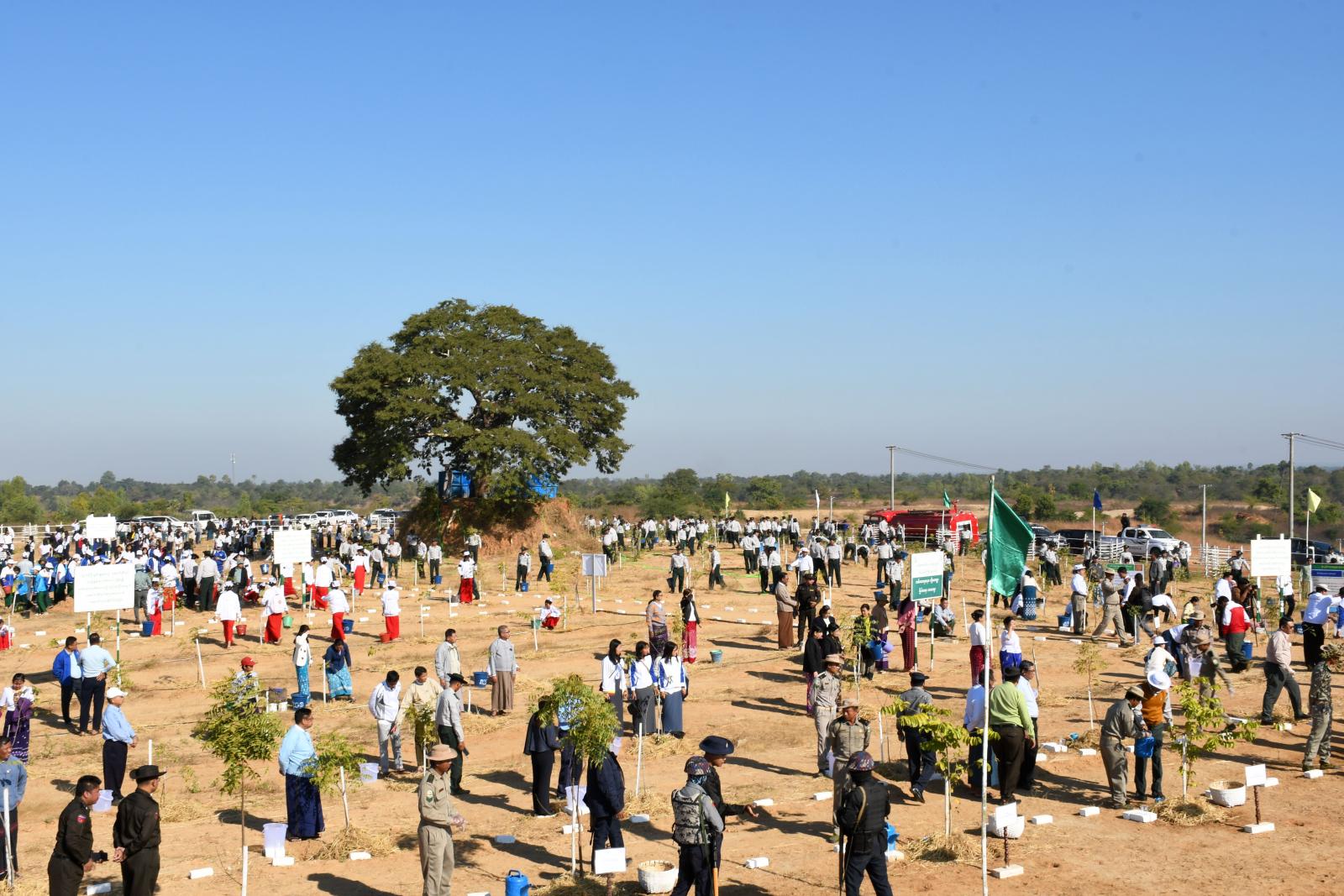 ဆက်လက်၍ တိုင်းဒေသကြီးဝန်ကြီးချုပ်၊ ဝန်ကြီးများနှင့်တာ၀န်ရှိသူများ၊ လူမှုရေးအသင်း အဖွဲ့ဝင်များနှင့် ကျောင်းသား၊ ကျောင်းသူများက အရိပ်ရအပင်များနှင့် လေကာတန်းပင် များအား ဓာတ်မြေဩဇာကျွေးခြင်း၊ ကောက်ရိုးခြောက်များဖုံးအုပ်၍ တစ်ပျော်တစ်ပါး ရေလောင်းခဲ့ကြရာ ဝန်ကြီးချုပ်နှင့် တာဝန်ရှိသူများက စိုက်ပျိုးပြီးသောသစ်ပင်များ ရေလောင်းပြုစုထိန်းသိမ်းနေမှုကို လှည့်လည်ကြည့်ရှုအားပေးခဲ့ကြောင်းသိရသည်။