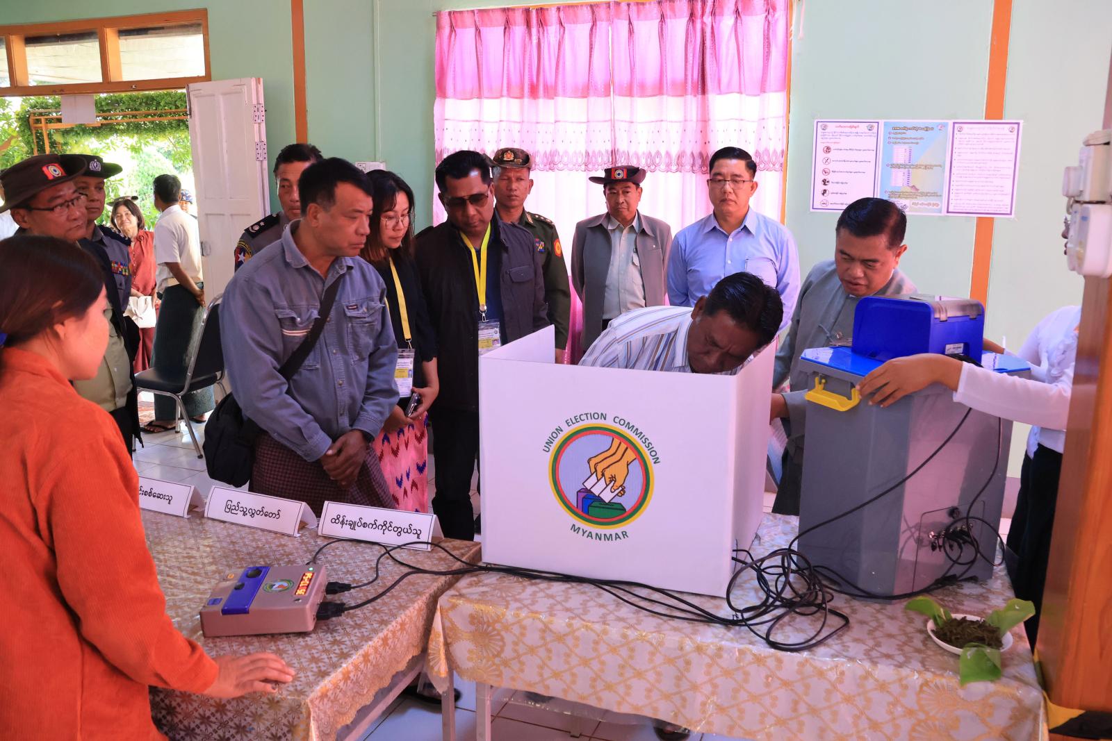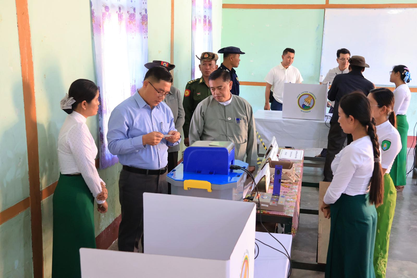 ကယားပြည်နယ်အတွင်း ပါတီစုံဒီမိုကရေစီ အထွေထွေရွေးကောက်ပွဲအောင်မြင်စွာ ကျင်းပနိုင်ရေး ဆောင်ရွက်လျက်ရှိရာ ဒီဇင်ဘာ ၂၇ ရက်က ပြည်နယ်ဝန်ကြီးချုပ် ဦးဇော်မျိုးတင်သည် တာဝန်ရှိသူများနှင့်အတူ မဲရုံများတွင် သွားရောက်တာဝန်ထမ်းဆောင်ကြမည့် ဝန်ထမ်းများအားတွေ့ဆုံအားပေးပြီး မဲရုံသုံးပစ္စည်းများ ပို့ဆောင်နိုင်ရေးဆောင်ရွက်နေမှုနှင့် မဲရုံများပြင်ဆင်ထားရှိမှုအခြေအနေများကို သွားရောက်ကြည့်ရှုစစ်ဆေးသည်။
