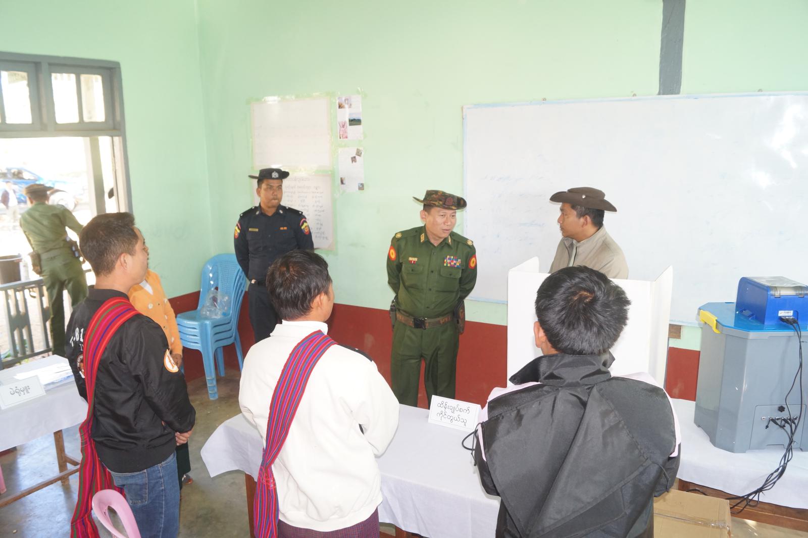 ထိုသို့ ကြည့်ရှုစစ်ဆေးရာတွင် ကျောက်တလုံးကြီးမြို့အတွင်းရှိ မြို့ပေါ်ရပ်ကွက်နှင့် ကျေးရွာအုပ်စုများတွင် ဖွင့်လှစ်ထားသည့်မဲရုံများ၌ မဲရုံကြိုတင်ပြင်ဆင်ဆောင်ရွက်ထားရှိမှု၊ တတိယအကြိမ် မဲဆန္ဒရှင် စာရင်းကပ်ထားကြေညာထားရှိမှုအား လာရောက်ကြည့်ရှုနေမှု၊ မဲဆန္ဒရှင်ပြည်သူများ စိတ်ချမ်းမြေ့စွာမဲပေးနိုင်ရေး ပြင်ဆင်ထားရှိမှုတို့ကို လိုက်လံကြည့်ရှုစစ်ဆေးရာ ကျောက်တလုံးကြီး မြို့အုပ်ချုပ်ရေးမှူးနှင့် တာဝန်ရှိသူများ၏ ရှင်းလင်းတင်ပြမှုများအပေါ် အရှေ့ပိုင်းတိုင်းစစ်ဌာနချုပ် ဒုတိယတိုင်းမှူးက လိုအပ်သည်များ ပေါင်းစပ်ညှိနှိုင်း ဆောင်ရွက်ပေးခဲ့ကြောင်း သိရသည်။
