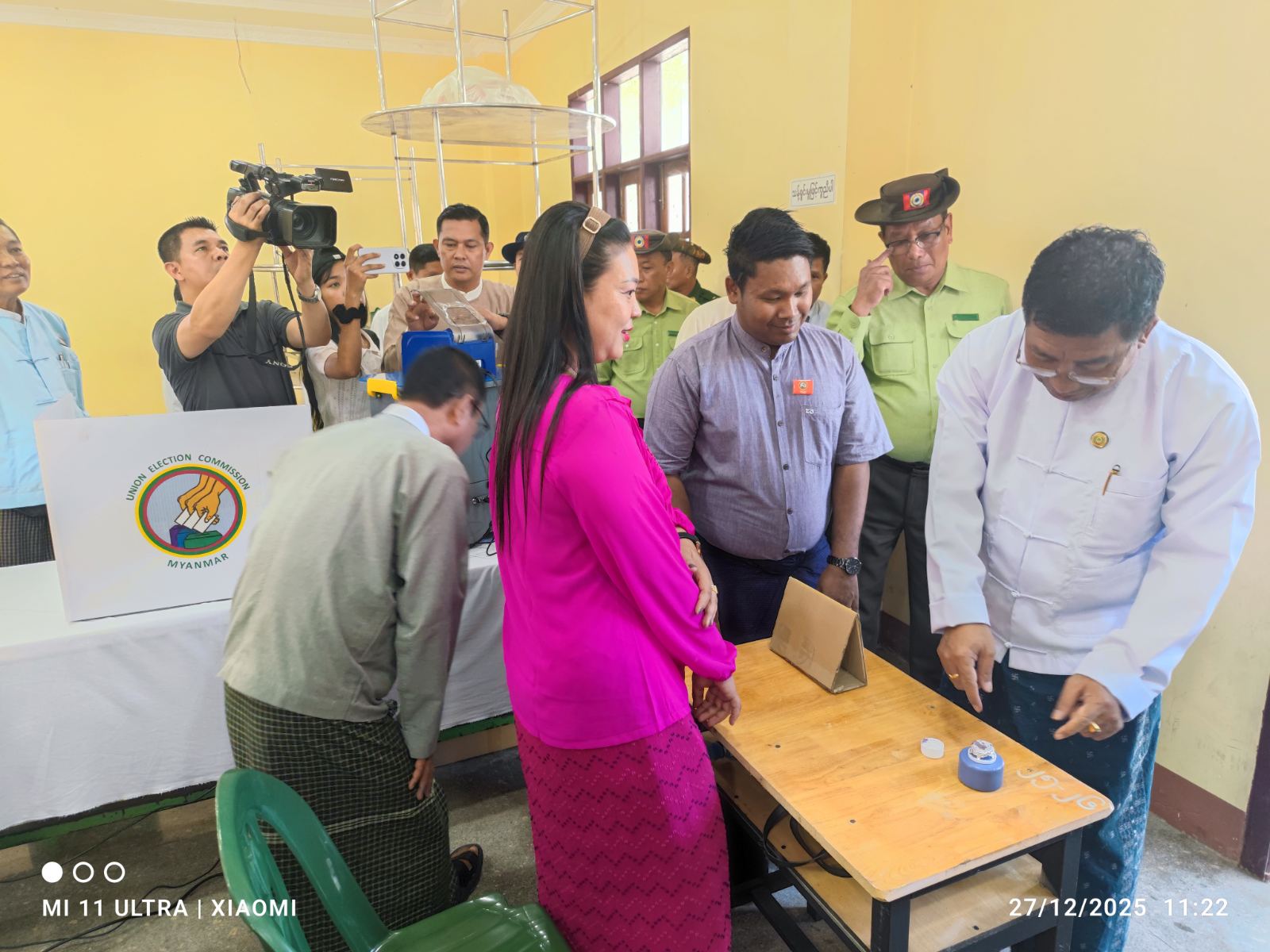 ဦးစွာ လူမှုရေးရာဝန်ကြီး ဦးဌေးအောင်နှင့်အဖွဲ့သည် ၂၀၂၅ ခုနှစ်၊ ဒီဇင်ဘာလတွင် ပါတီစုံဒီမိုကရေစီအထွေထွေရွေးကောက်ပွဲ ကျင်းပနိုင်ရေးအတွက် ဒဂုံမြို့သစ် (တောင်ပိုင်း) မြို့နယ်၊ ၂၅ ရပ်ကွက်၊ ၂၁ ရပ်ကွက်၊ ၁၀၇ ရပ်ကွက်ရှိ မဲရုံများတွင် မဲရုံများ ခင်းကျင်းပြင်ဆင်ထားရှိမှု အခြေအနေများအား ကြည့်ရှုစစ်ဆေးပြီး မဲရုံမှူး၊ ဒုမဲရုံမှူး၊ စက်ကိုင်များနှင့် မဲရုံတာဝန်ကျဝန်ထမ်းများအား ရင်းရင်းနှီးနှီးနှုတ်ဆက်ကာ လုပ်ငန်းဆောင်ရွက်နေမှု အခြေအနေများနှင့် လိုအပ်သည်များ ဖြည့်ဆည်းဆောင်ရွက်ပေးသည်။