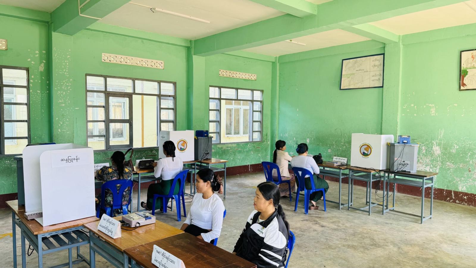 ကရင်ပြည်နယ်၊မြဝတီခရိုင်၊မြဝတီမြို့၌ ၂၀၂၅ ခုနှစ်၊ ဒီဇင်ဘာလ ၂၈ ရက်နေ့တွင် ကျင်းပပြုလုပ်မည့် ပါတီစုံဒီမိုကရေစီအထွေထွေ ရွေးကောက်ပွဲ အောင်မြင်စွာကျင်းပနိုင်ရေးအတွက် ယမန်နေ့နံနက် ၉နာရီ၌ သတ်မှတ်မဲရုံများ စီမံပြင်ဆင်ဆောင်ရွက်ထားရှိမှုအခြေအနေများကို ခရိုင်စီမံခန့်ခွဲရေးနှင့်အုပ်ချုပ်ရေးကော်မတီဥက္ကဋ္ဌ ဦးကောင်းစံလင်းနှင့်အဖွဲ့ဝင်များ၊ မြို့နယ်စီမံခန့်ခွဲရေးနှင့်အုပ်ချုပ်ရေးကော်မတီဥက္ကဋ္ဌ ဦးဇော်မော်အောင်နှင့်ခရိုင် ရွေးကောက်ပွဲကော်မရှင်အဖွဲ့ခွဲဥက္ကဋ္ဌ ဦးမြင့်ဦး၊ ခရိုင်ရွေးကောက်ပွဲအရာရှိ ဦးမျိုးမင်းထက်နှင့် ခရိုင်/မြို့နယ် ရွေးကောက်ပွဲကော်မရှင်အဖွဲ့ခွဲမှ ဌာနဆိုင်ရာတာဝန်ရှိသူများက မြဝတီမြို့ပေါ်/ကျေးရွာများရှိ သတ်မှတ်မဲရုံ ပြင်ဆင်နေရာ ချထားမှုအခြေအနေနှင့် မဲပေးစက်နှင့်ဆက်စပ်ပစ္စည်းများ သတ်မှတ်ပုံစံအတိုင်း စီမံပြင်ဆင်ထားရှိမှု အခြေအနေများကို ကွင်းဆင်းကြည့်ရှုစိစစ်ခဲ့ကြသည်။
