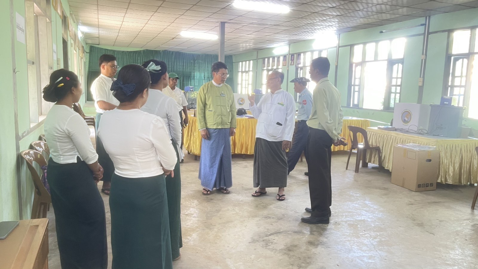 ရန်ကုန်တိုင်းဒေသကြီးအစိုးရအဖွဲ့အတွင်းရေးမှူး ဦးနေဝင်းအောင်သည် ၂၀၂၅ ခုနှစ်၊ ပါတီစုံဒီမိုကရေစီအထွေထွေ ရွေးကောက်ပွဲ အောင်မြင်စွာ ကျင်းပနိုင်ရေးအတွက် အပိုင်း(၁)တွင် ပါဝင်သည့် မင်္ဂလာဒုံမြို့နယ်အတွင်းရှိ မဲရုံများ ခင်းကျင်းဆောင်ရွက်ထားရှိမှုနှင့် မဲပေးစက်များ တပ်ဆင်ထားမှု အခြေအနေများကို ယမန်နေ့က လှည့်လည်ကြည့်ရှုစစ်ဆေးသည်။