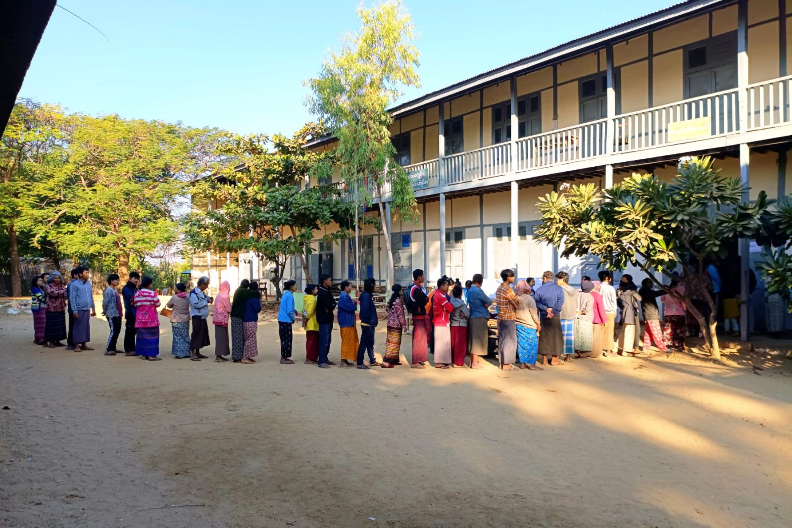 မဲဆန္ဒရှင်ပြည်သူများမှ မဲရုံများသို့ စိတ်အားထက်သန်စွာ ဆန္ဒမဲပေးရန် စောင့်ဆိုင်းလျက်ရှိကြကာ မဲရုံမဖွင့်လှစ်မီ မဲရုံတာဝန်ရှိသူများက လွတ်တော်တစ်ရပ်စီအတွက် ထိန်းချုပ်စက်၊ ဆန္ဒပြုစက်နှင့် မဲပေးချက်ဖော်ပြသည့်စက်တို့ပါဝင်သော အီလက်ထရောနစ် မဲပေးစက်တို့ကို စနစ်တကျတပ်ဆင်ပြီးနောက် နံနက်(၆)နာရီတိတိတွင် မဲရုံမှူးကမဲရုံဖွင့်လှစ်ပေးခဲ့သည်။ ထို့နောက် စောင့်ဆိုင်းနေသည့် မဲဆန္ဒရှင် ပြည်သူများမှ လျှို့ဝှက်ဆန္ဒပြုခန်းများ၌ လွှတ်တော်အသီးသီးအတွက် ဆန္ဒပြုခဲ့ကြသည်။