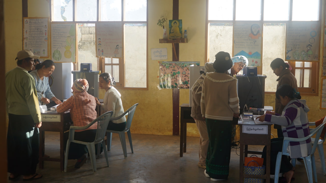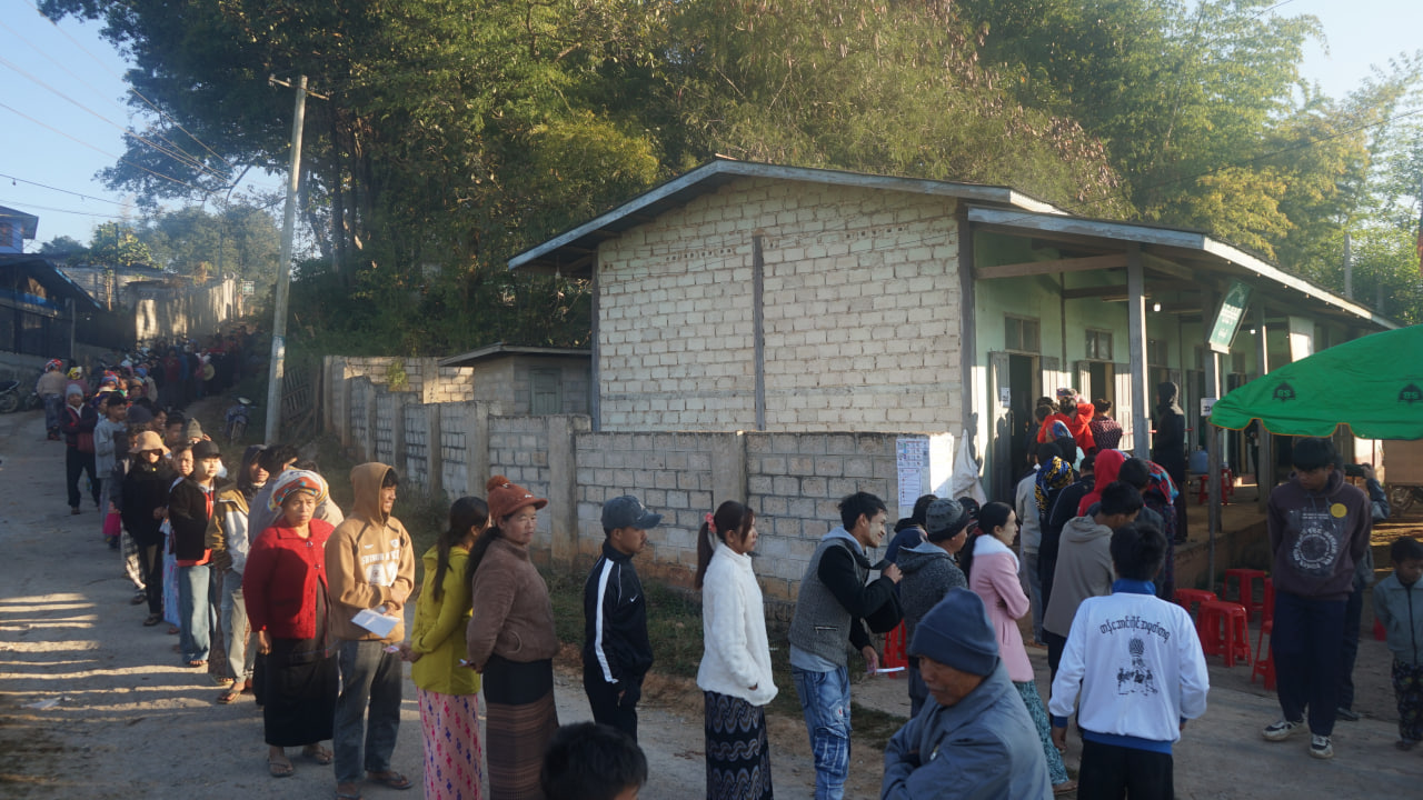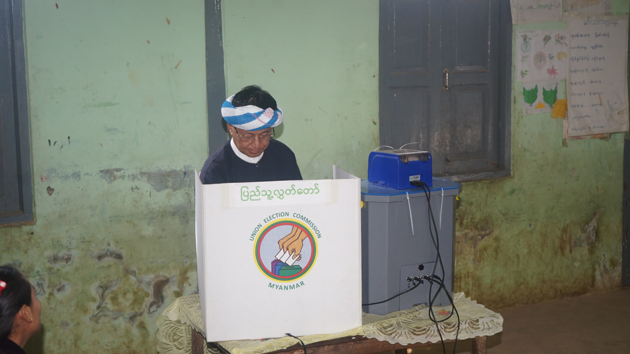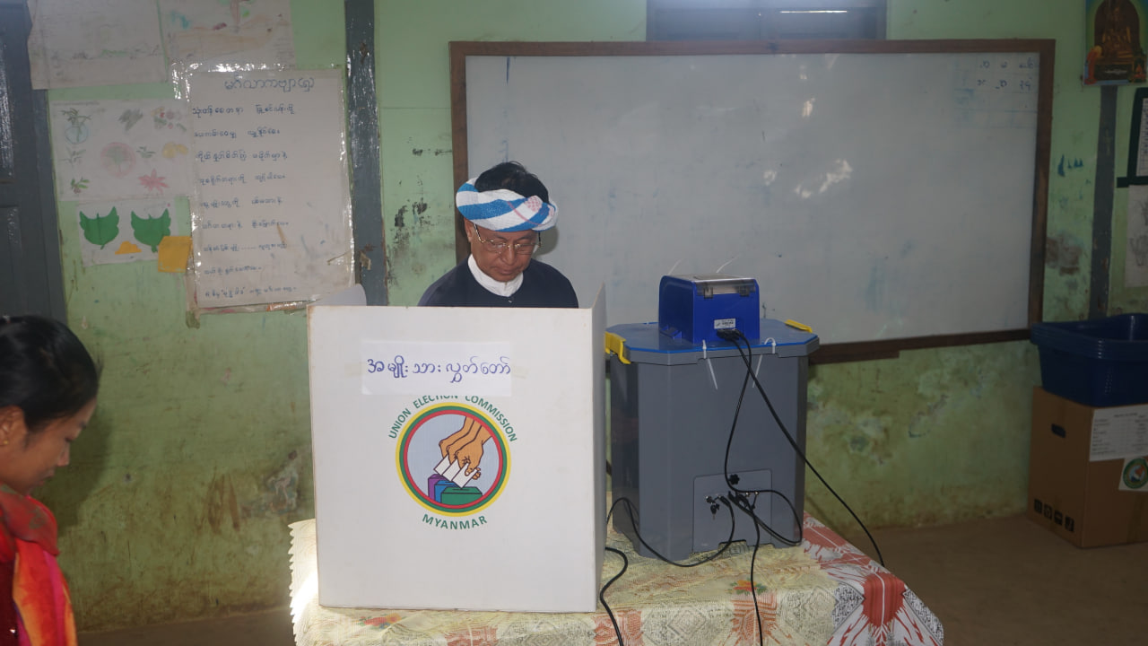 ရှမ်းပြည်နယ်(တောင်ပိုင်း) ပအိုဝ်းကိုယ်ပိုင်အုပ်ချုပ်ခွင့်ရဒေသ ဟိုပုံးမြို့နယ်၌ ၂၀၂၅ခုနှစ် ပါတီစုံဒီမိုကရေစီအထွေထွေရွေးကောက်ပွဲကို ယနေ့နံနက် ၆ နာရီမှစတင်ကျင်းပရာ အမျိုးသားကာကွယ်ရေးနှင့် လုံခြုံရေးကောင်စီဗဟိုအကြံပေးအဖွဲ့ အဖွဲ့ဝင် ခွန်စံလွင်နှင့်ဇနီး၊ မိသားစုဝင်နှင့်အတူ ဟိုပုံးမြို့တောင်ရပ်ကွက်ရှိ အမှတ်(၆) အခြေခံပညာမူလတန်းကျောင်း မဲရုံအမှတ်(၃)၌ ပါဝင်ဆန္ဒမဲပေးသည်။