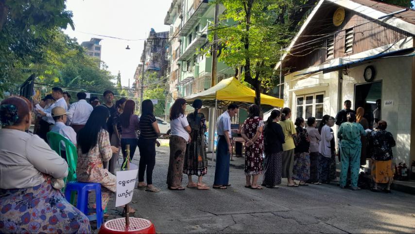အလုံခရိုင်၊ အလုံမြို့နယ်အတွင်းရှိ မဲရုံများတွင် ပြည်သူများအနေဖြင့် ယနေ့နံနက်ပိုင်းက ၂၀၂၅ ပါတီစုံဒီမိုကရေစီရွေးကောက်ပွဲတွင် ဆန္ဒမဲပေးလျက်ရှိသည်။