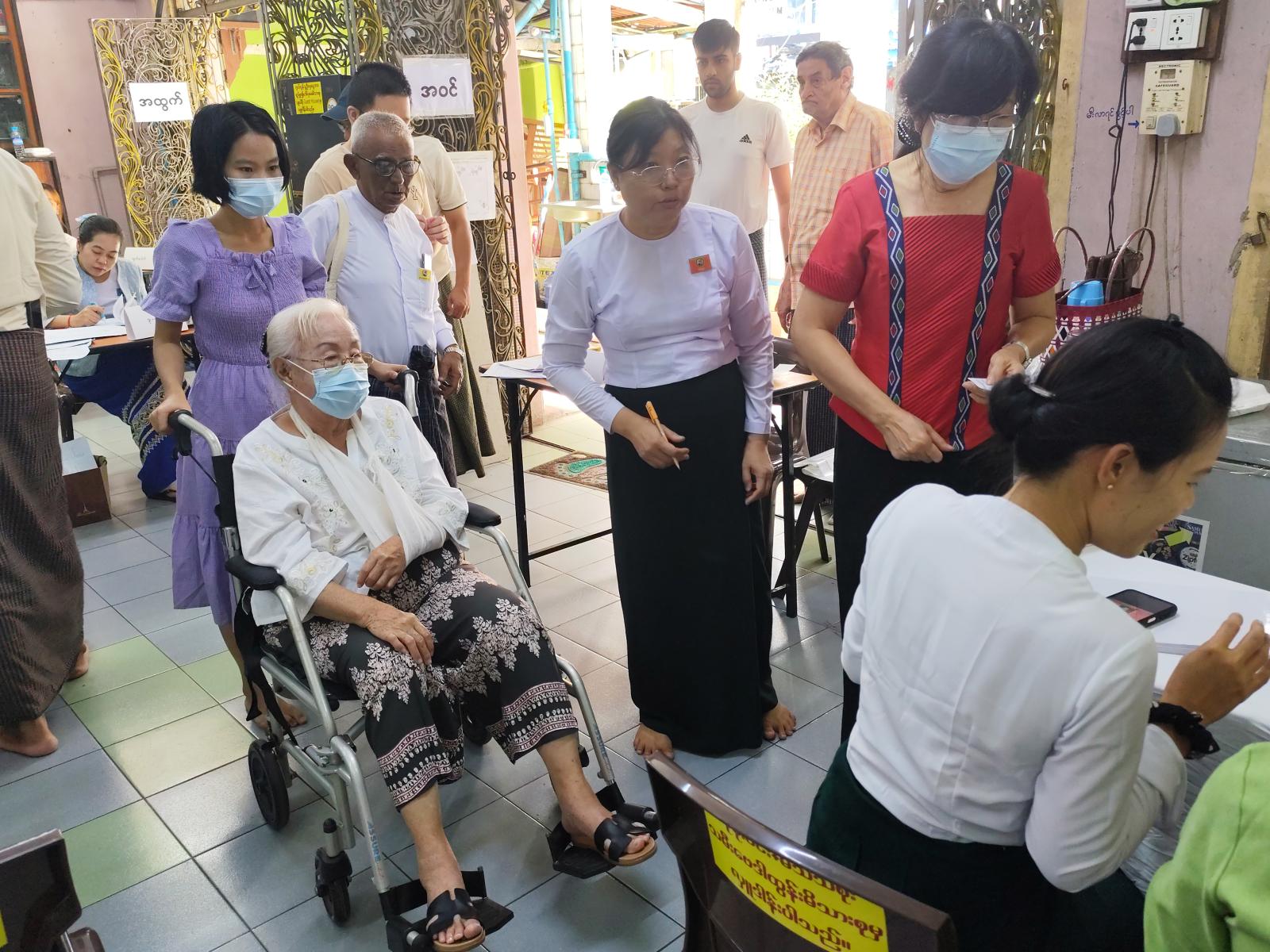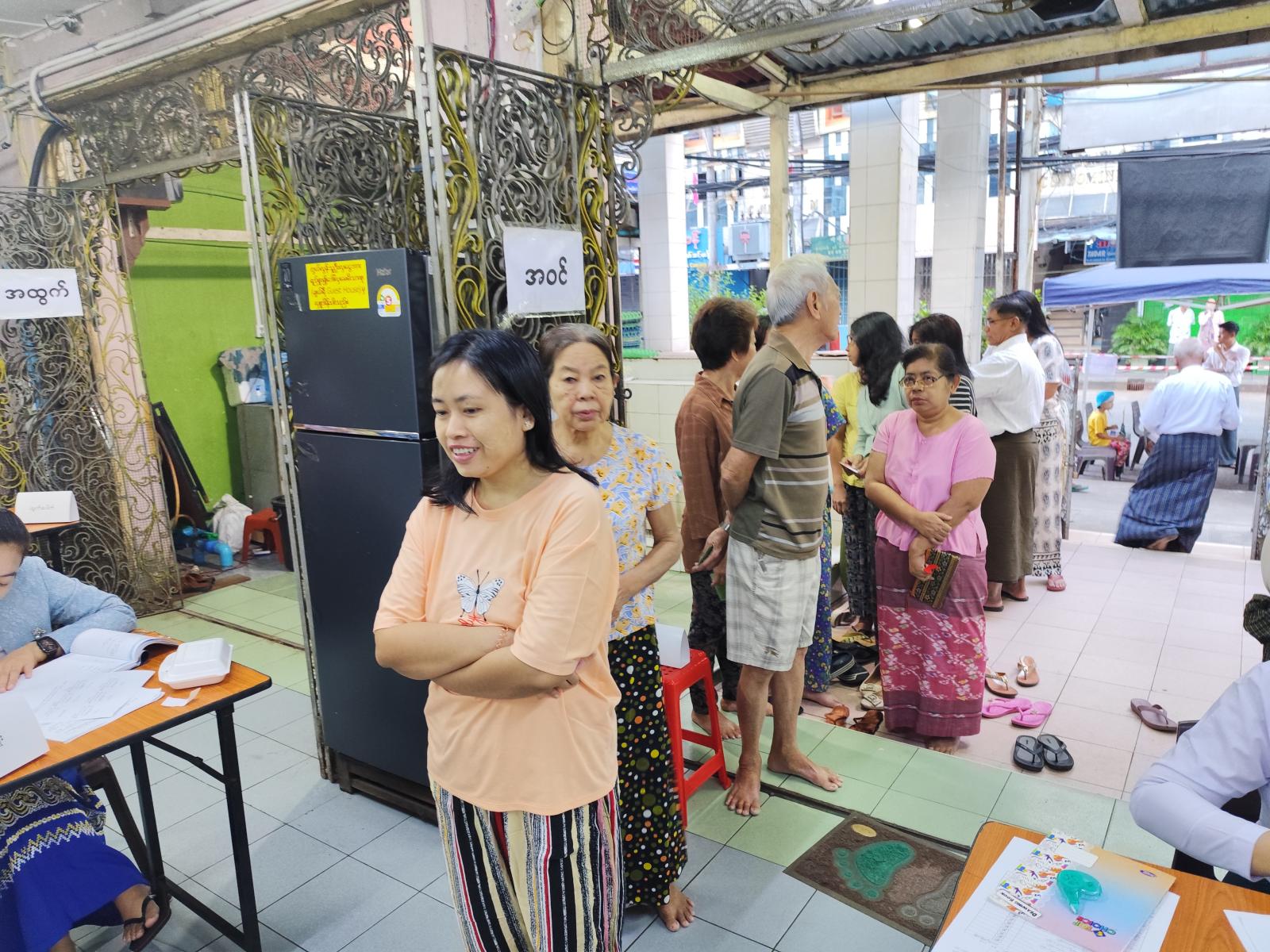 မဲရုံမဖွင့်လှစ်မီမဲရုံတာဝန်ရှိသူများက ထိန်းချုပ်စက်၊ ဆန္ဒပြုစက်နှင့် မဲပေးချက်ဖော်ပြသည့် စက်တို့ပါဝင်သော အီလက်ထရောနစ်မဲပေးစက်တို့ကို စနစ်တကျတပ်ဆင်ကာ နံနက် (၆) နာရီတိတိအချိန်တွင် မဲရုံမှူးကမဲရုံဖွင့်လှစ်ပေးခဲ့ပြီး စောင့်ဆိုင်းနေသည့် မဲဆန္ဒရှင်ပြည်သူများမှ လွှတ်တော်အသီးသီးအတွက် လျှို့ဝှက်ဆန္ဒပြုခန်းများတွင် မဲပေးခြင်းကို စတင်ခဲ့သည်။