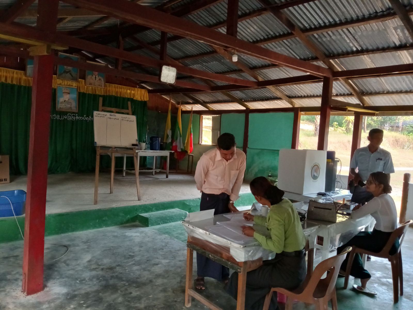 ၂၀၂၅ ခုနှစ်၊ ပါတီစုံဒီမိုကရေစီအထွေထွေရွေးကောက်ပွဲကို မဲပေးခြင်းမဆောင်ရွက်မီ မဲရုံတာဝန်ရှိသူများက ပါတီကိုယ်စားလှယ်များအား မဲပုံများပြသ၍ နံနက်(၆)နာရီတိတိတွင် မဲရုံးမှူးက မဲရုံဖွင့်လှစ်ကြောင်းကြေညာသည်နှင့်တစ်ပြိုင်နက် မဲဆန္ဒရှင်ပြည်သူများက မဲနံပါတ်၊ နိုင်ငံသားစိစစ်ရေးကတ်ပြားများပြသ၍ လွှတ်တော်အသီးသီးအတွက် မိမိကြိုက်နှစ်သက်ရာပါတီနှင့် လွှတ်တော်ကိုယ်စားလှယ်လောင်းများအား ဆန္ဒပြုမဲပေးကြသည်။