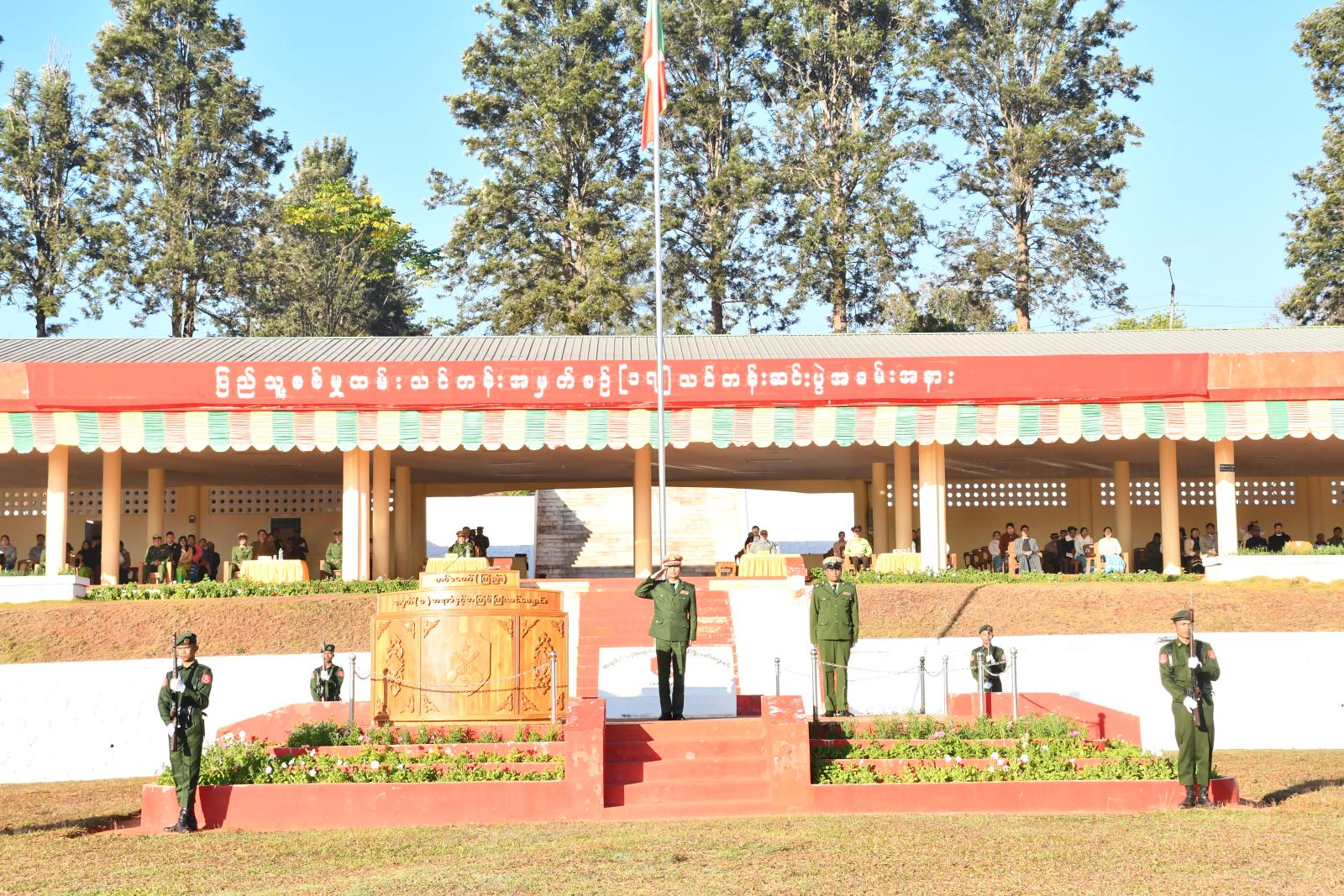 ပြည်သူ့စစ်မှုထမ်း သင်တန်းအမှတ်စဉ်(၁၇) ကတိသစ္စာခံယူပွဲနှင့်သင်တန်းဆင်းပွဲကို ယမန်နေ့နံနက် ၈ နာရီက ရပ်စောက်မြို့နယ်၊ ဗထူးတပ်မြို့ တပ်မတော်(ကြည်း)ဗိုလ်သင်တန်းကျောင်း စစ်ရေးပြကွင်း၌ကျင်းပရာ ရှမ်းပြည်နယ်အစိုးရအဖွဲ့မှ လမ်းပန်းဆက်သွယ်ရေးဝန်ကြီး ဦးနေဝင်းအောင်၊ တပ်မတော်(ကြည်း) ဗိုလ်သင်တန်းကျောင်း (ဗထူး) ကျောင်းအုပ်ကြီး ဗိုလ်မှူးချုပ် မင်းသီဟနှင့်တပ်နယ်မှအရာရှိများ၊ မြို့နယ်စီမံခန့်ခွဲရေးနှင့်အုပ်ချုပ်ရေးအဖွဲ့ဝင်များ၊ မြို့နယ်အဆင့်ဌာနဆိုင်ရာအကြီးအကဲများ၊ ဝန်ထမ်းများ၊ ရပ်ကွက်/ကျေးရွာအုပ်စုအုပ်ချုပ်ရေးမှူးများနှင့် ပြည်သူ့စစ်မှုထမ်းသင်တန်းသားများ တက်ရောက်ခဲ့ကြသည်။ သင်တန်းဆင်းပွဲတွင် တပ်မတော်(ကြည်း) ဗိုလ်သင်တန်းကျောင်းမှ ကျောင်းအုပ်ကြီးက စံပြတပ်သားဆု၊ လက်ဖြောင့်ထူးချွန်ဆု၊ စစ်မြေပြင် အင်ဂျင်နီယာထူးချွန်ဆု၊ ချေမှုန်းရေး အကောင်းဆုံးတပ်စိတ်ဆု၊ စစ်သည်တော်ကျင့်ဝတ်ဆု၊ တပ်စိတ်တိုက်ပွဲ အကောင်ဆုံး တပ်စိတ်ဆု၊ အိပ်ဆောင်ခင်းကျင်းမှု အကောင်းဆုံးဆုများ ပေးအပ်ချီးမြှင့်ခဲ့ပြီးနောက် ကတိသစ္စာခံယူခဲ့ကြသည်။ ထို့နောက် ပြည်သူ့စစ်မှုထမ်း သင်တန်းသား(၇၇) ဦးအား သင်တန်းဆင်းမိန့်ခွန်းပြောကြားပြီး သင်တန်းဆင်းသင်တန်းသားများက ကျောင်းအုပ်ကြီးအား စစ်ကြောင်း ပုံစံဖြင့် ချီတက်အလေးပြုခဲ့ကြောင်းသိရသည်။