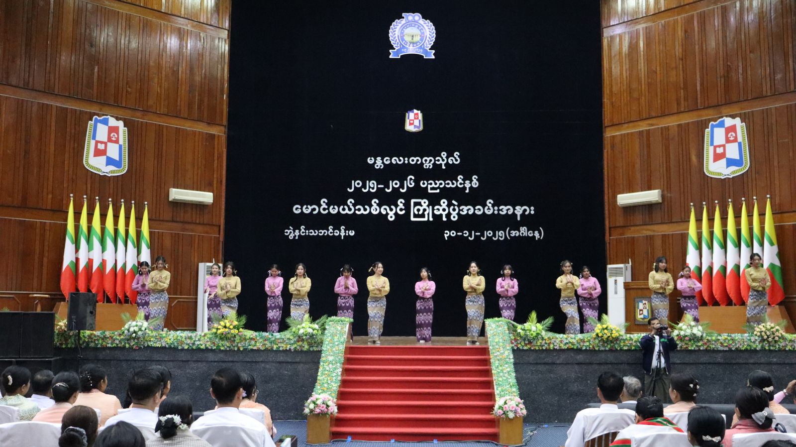 မန္တလေးတက္ကသိုလ်၌ မောင်မယ်သစ်လွင်ကြိုဆိုပွဲ အခမ်းအနားကို ယနေ့နံနက်ပိုင်းက ဘွဲ့နှင်းသဘင်ခန်းမ၌ ကျင်းပခဲ့သည်။