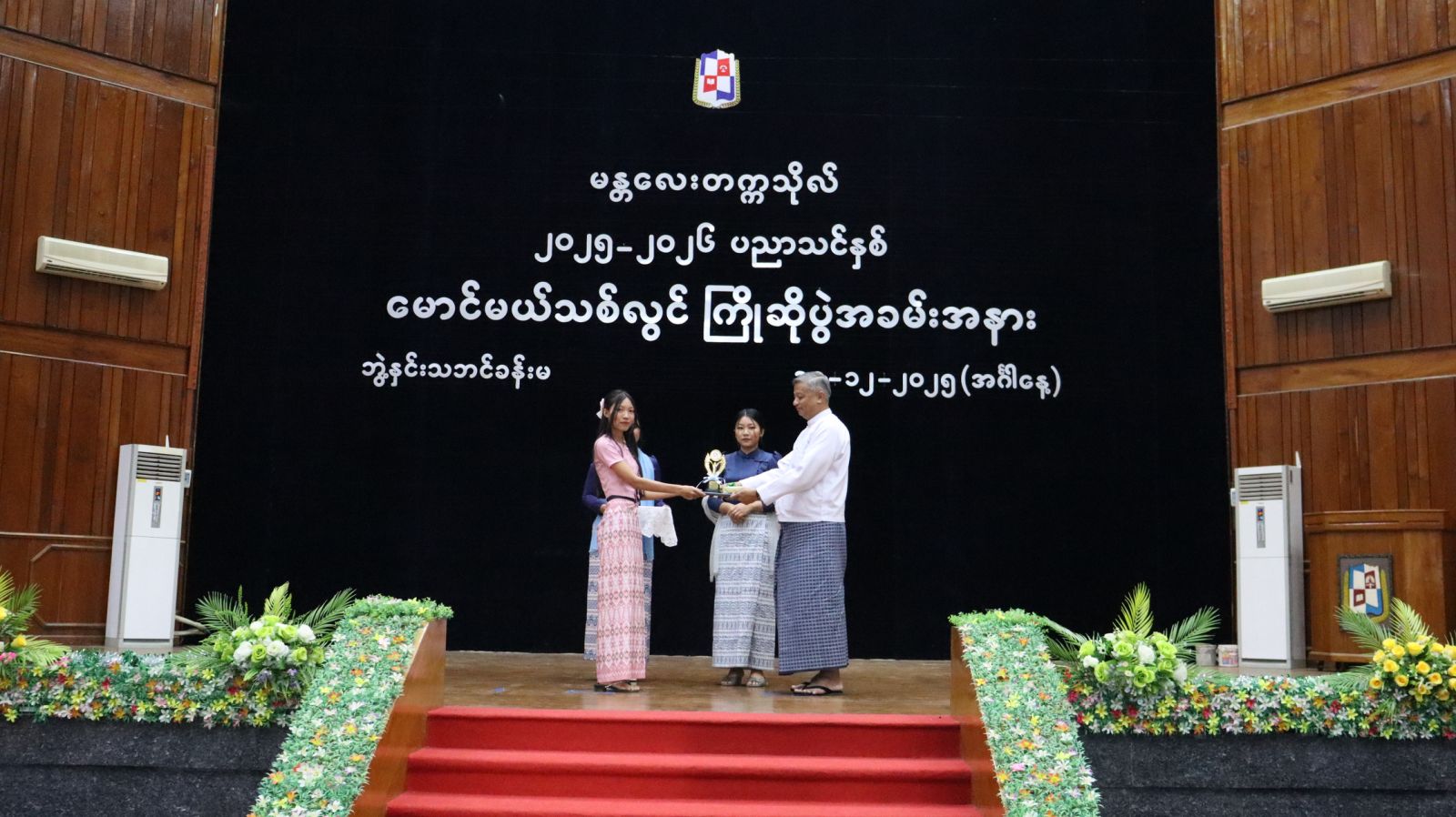 ၂၀၂၄-၂၀၂၅ ပညာသင်နှစ်အတွက် လူရည်ချွန်ဆုရရှိခဲ့သည့် ကျောင်းသူ (၁)ဦးအား ဂုဏ်ပြုဆုနှင့် ပထမနှစ် (၂၀၂၅ခုနှစ် တက္ကသိုလ်ဝင်တန်းအောင်) များမှ အမှတ်အများဆုံး၊ ပထမ၊ ဒုတိယ၊ တတိယရရှိပြီး ဝင်ရောက်လာသူ ကျောင်းသား၊ ကျောင်းသူ(၃)ဦးအား တာဝန်ရှိသူများက ဂုဏ်ပြုဆုများ ချီးမြှင့်ခဲ့ကြောင်းသိရသည်
