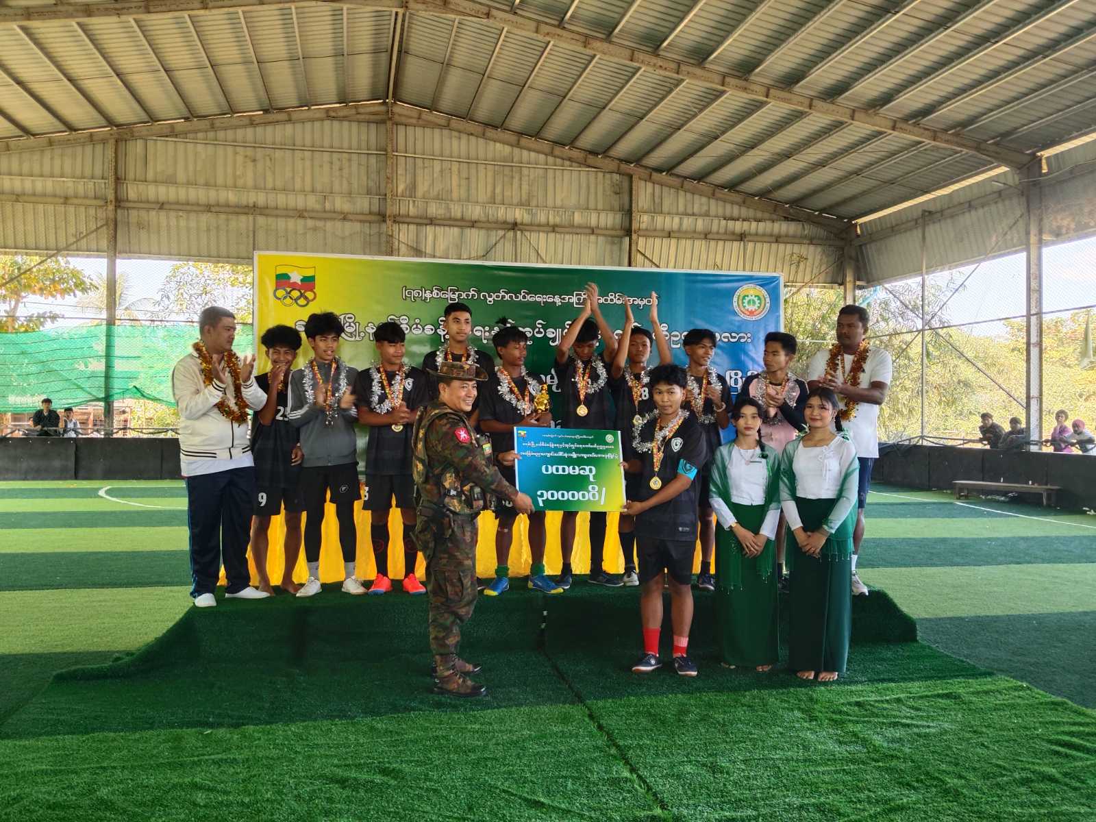 ဗိုလ်လုပွဲစဉ်အပြီးတွင် ဆုချီးမြှင့်ပွဲအခမ်းအနားကို ဆက်လက်ကျင်းပရာ ဗျူဟာမှူး ဒုတိယဗိုလ်မှူးကြီး ဇော်မျိုးထက်က အနိုင်ရဗိုလ်စွဲသွားသော အ.ထ.က (၁) အသင်းအား တစ်ဦးချင်းလည်ဆွဲဆု၊ ငွေသားဆုနှင့် ဆုဖလားတို့ကို ပေးအပ်ချီးမြှင့်ခဲ့ပြီး ဒုတိယဆုရရှိသော အ.ထ.က (၂) အသင်းနှင့် တတိယဆုရရှိသော အ.ထ.က (ကွမ်းမိုးဒိန်း) အသင်းတို့အား တစ်ဦးချင်းလည်ဆွဲဆု၊ ငွေသားဆုများအားလည်းကောင်း၊ နှစ်သိမ့်ဆုရရှိသော အသင်းများနှင့် နေရာအလိုက် အကောင်းဆုံးအားကစားသမားဆုများ၊ ဂိုးသွင်းအများဆုံးဆုနှင့် ပွဲစဉ်တစ်လျောက်အကောင်းဆုံးအားကစားဆုများကိုလည်းကောင်း တာဝန်ရှိသူများက ဆုများအသီးသီးချီးမြှင့်ခဲ့ကြောင်း သတင်းရရှိသည်။