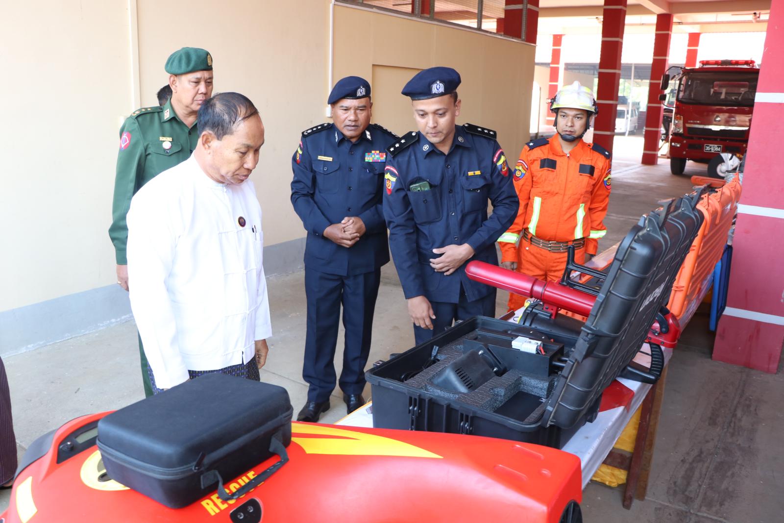 ယင်းနောက် တိုင်းဒေသကြီးဝန်ကြီးချုပ်နှင့် တာဝန်ရှိသူများသည် အဆိုပါမီးသတ် စခန်းအတွင်း ခင်းကျင်းပြသထားရှိသည့် ၂၀၂၅-၂၀၂၆ ဘဏ္ဍာရေးနှစ်၊ တိုင်းဒေသကြီးရန်ပုံငွေဖြင့် ဝယ်ယူဖြည့်တင်းထားရှိသည့် ခေတ်မီရှာဖွေကယ်ဆယ်ရေးပစ္စည်းများအား ကြည့်ရှုခဲ့ကြပြီး တိုင်းဒေသကြီးအတွင်းရှိ မြို့နယ်မီးသတ်စခန်းများသို့ ပြန်လည်ဖြန့်ဖြူးပေးမည့် မီးငြိမ်းသတ်ယာဉ်များနှင့် ရေသည်ယာဉ်များအား လိုက်လံကြည့်ရှုခဲ့ကြသည်။