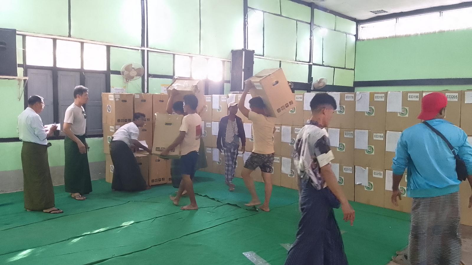မဲပေးစက်နှင့်ဆက်စပ်ပစ္စည်းများကို ပုသိမ်မြို့မှ တာဝန်ရှိသူများပါဝင်သောအဖွဲ့က MEVM မဲပေးစက် ၄၇၉ လုံးနှင့် ဘတ္ထီရီအိုး (၉၅၈) လုံးတို့အားလည်းကောင်း၊ မြောင်းမြမြို့မှ တာဝန်ရှိသူများ ပါဝင်သော အဖွဲ့က MEVM မဲပေးစက် ၆၈ လုံးနှင့် ဘတ္ထရီအိုး (၁၃၃) လုံးတို့အား လာရောက်ပို့ဆောင်ခဲ့ရာ အိမ်မဲမြို့နယ်စီမံခန့်ခွဲရေးနှင့် အုပ်ချုပ်ရေးကော်မတီဥက္ကဋ္ဌ ဦးသက်ကိုကိုဦးနှင့်အဖွဲ့ဝင်များ၊ မြို့နယ်ရွေးကောက်ပွဲကော်မရှင်အဖွဲ့ခွဲဥက္ကဋ္ဌ ဦးကျော်မြင့်နှင့်အဖွဲ့ဝင်များ၊ မြို့နယ်ရွေးကောက်ပွဲအရာရှိ ဒေါ်ခိုင်ဆွေသက်နှင့်ဝန်ထမ်းများက ကြည့်ရှုစစ်ဆေးခဲ့ပြီးလက်ခံရယူခဲ့ကြောင်းသိရသည်။