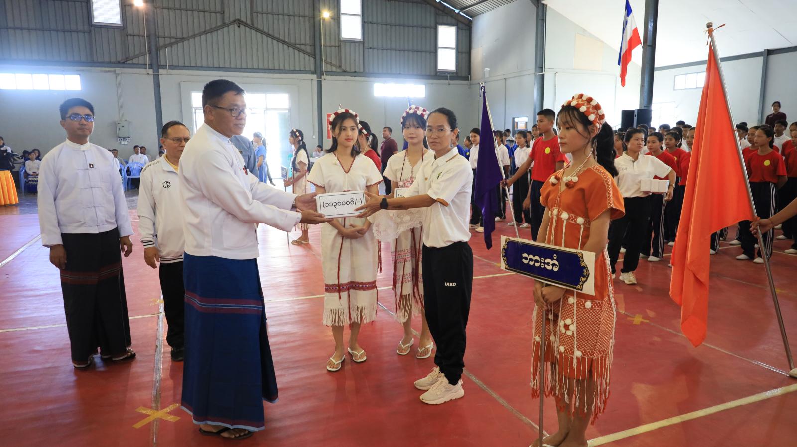 အဆိုပါအခမ်းအနားတွင် ကရင်ပြည်နယ်အစိုးရအဖွဲ့ ပြည်နယ်လူမှုရေးရာဝန်ကြီးဦး စောထွန်းအောင်က အဖွင့်အမှာစကားပြောကြားပြီး ပြိုင်ပွဲဝင်အားကစားသမားများက အားကစားသစ္စာ အဓိဋ္ဌာန်ရွတ်ဆိုပြီးနောက် ပြည်နယ်လူမှုရေးရာဝန်ကြီးက ပြိုင်ပွဲဝင်အသင်းများအား ချီးမြှင့်ငွေများပေးအပ်ကာ ပြိုင်ပွဲဝင်အားကစားသမားများအား ရင်းရင်းနှီးနှီးလိုက်လံနှုတ်ဆက်အားပေးစကား ပြောကြားကြောင်းသိရသည်။
