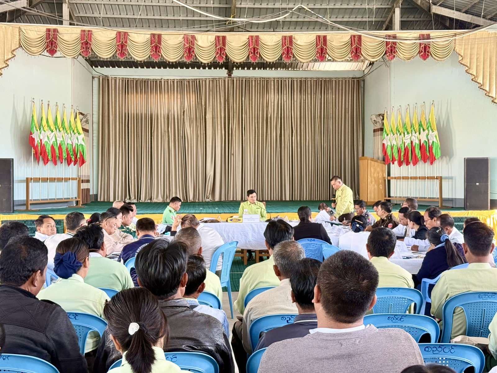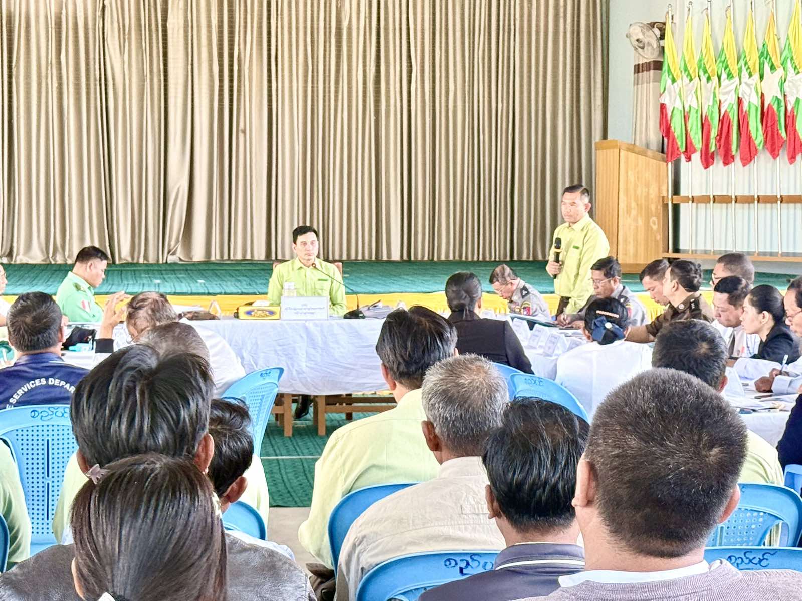ထို့နောက် လုပ်ငန်းညှိနှိုင်းအစည်းသို့တက်ရောက်လာကြသည့် ခရိုင်/မြို့နယ်အဆင့် ဌာနဆိုင်ရာများက ရွေးကောက်ပွဲနှင့်ပတ်သက်ပြီး ကြိုတင်ပြင်ထားရှိမှုများအား တင်ပြဆွေးနွေးကြပြီး အစည်းအဝေးတက်ရောက်လာသူများက ကြုံတွေ့ရမည့်အခက်အခဲများကို တင်ပြဆွေးနွေးကြရာ ခရိုင်စီမံခန့်ခွဲရေးနှင့်အုပ်ချုပ်ရေးကော်မတီဥက္ကဋ္ဌမှ သက်ဆိုင်ရာဌာနဆိုင်ရာများနှင့် ပူးပေါင်းဆောင်ရွက်ပေးခဲ့ကြောင်းသိရသည်။