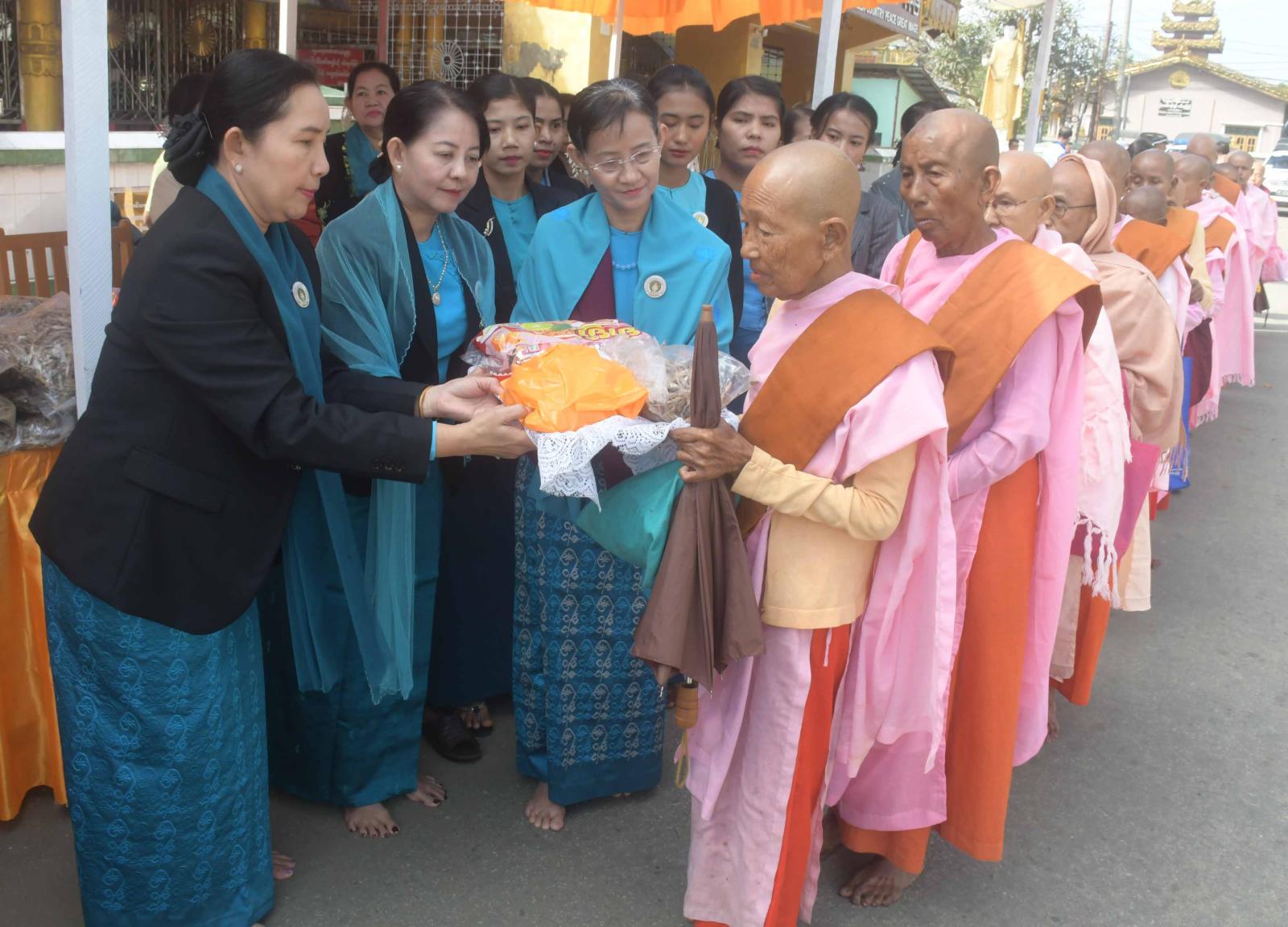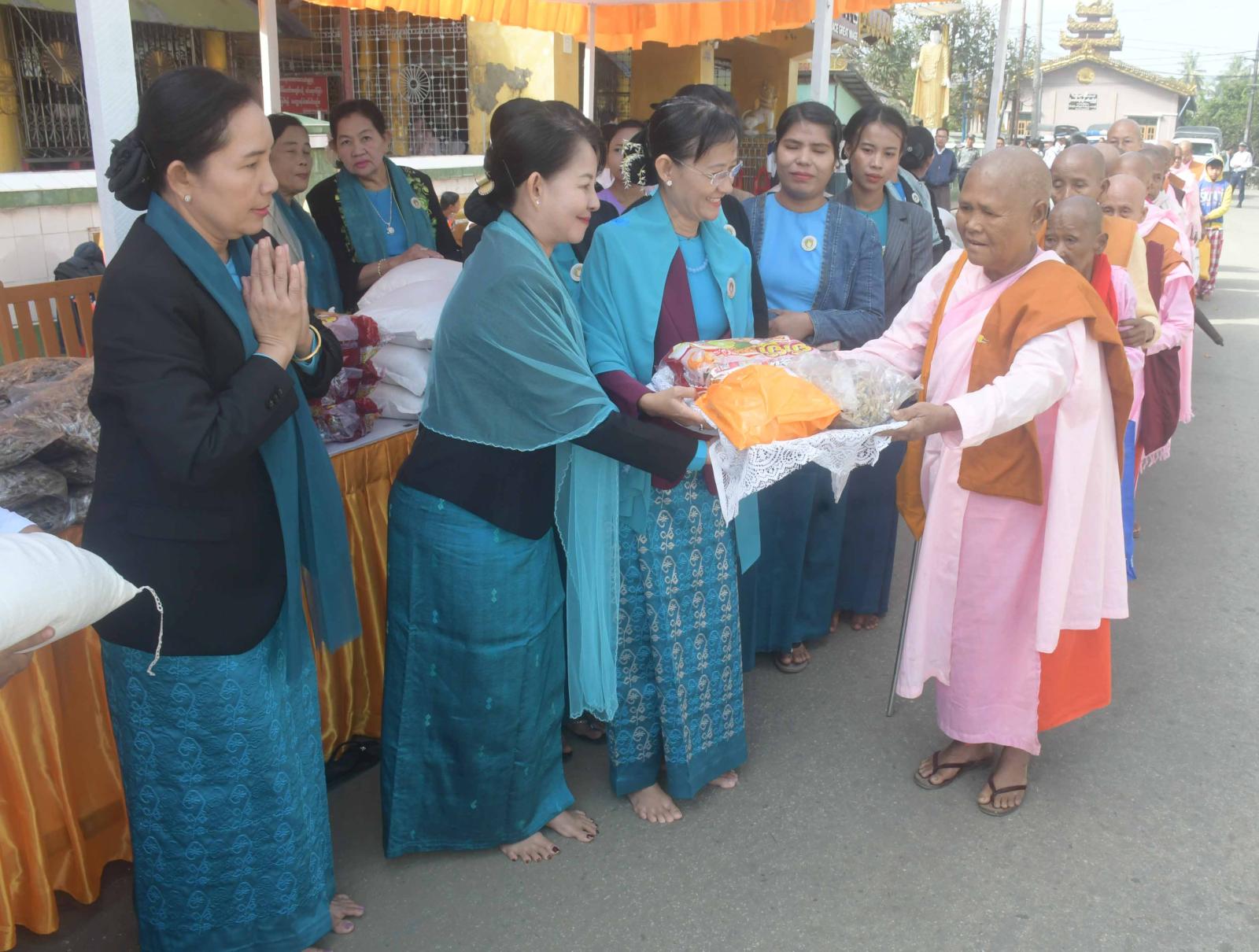 ထို့နောက် ရခိုင်ပြည်နယ်ဝန်ကြီးချုပ် ဦးထိန်လင်းနှင့်ဇနီး ပြည်နယ်အမျိုးသမီးရေးရာအဖွဲ့နာယက ဒေါ်ဆွေဆွေမြတ်၊ ပြည်နယ်တရားလွှတ်တော်တရားသူကြီးချုပ်၊ ပြည်နယ်အစိုးရအဖွဲ့ဝင်များနှင့်ဇနီးများ၊ ဌာနဆိုင်ရာများသည် အတုလမာရဇိန်ပြည်လုံးချမ်းသာ ဘုရားကြီးရှေ့၌ ရခိုင်ပြည်နယ်အစိုးရအဖွဲ့မှ သီလရှင်ဆရာကြီး၊ ဆရာလေးများအား ဆွမ်းဆန်တော်နှင့် အခြေခံစားသောက်ကုန်များကို လောင်းလှူခဲ့ကြကြောင်း သိရသည်။