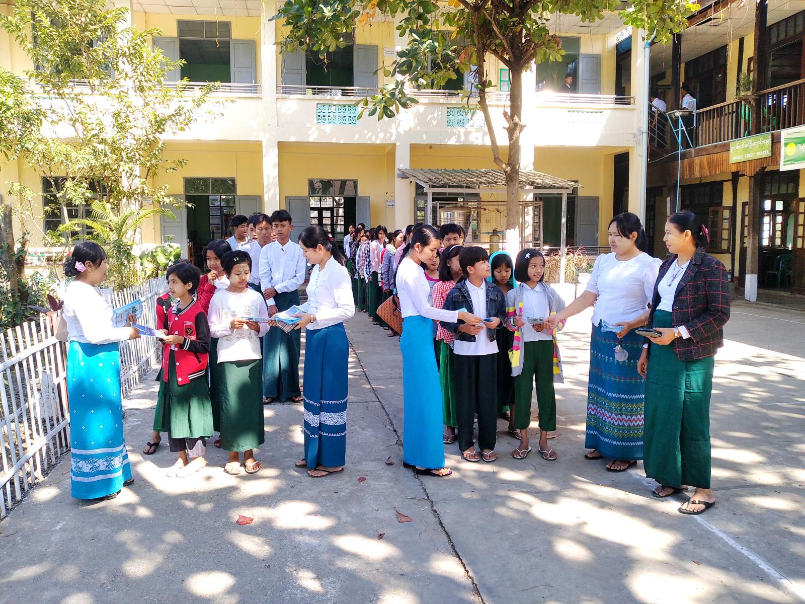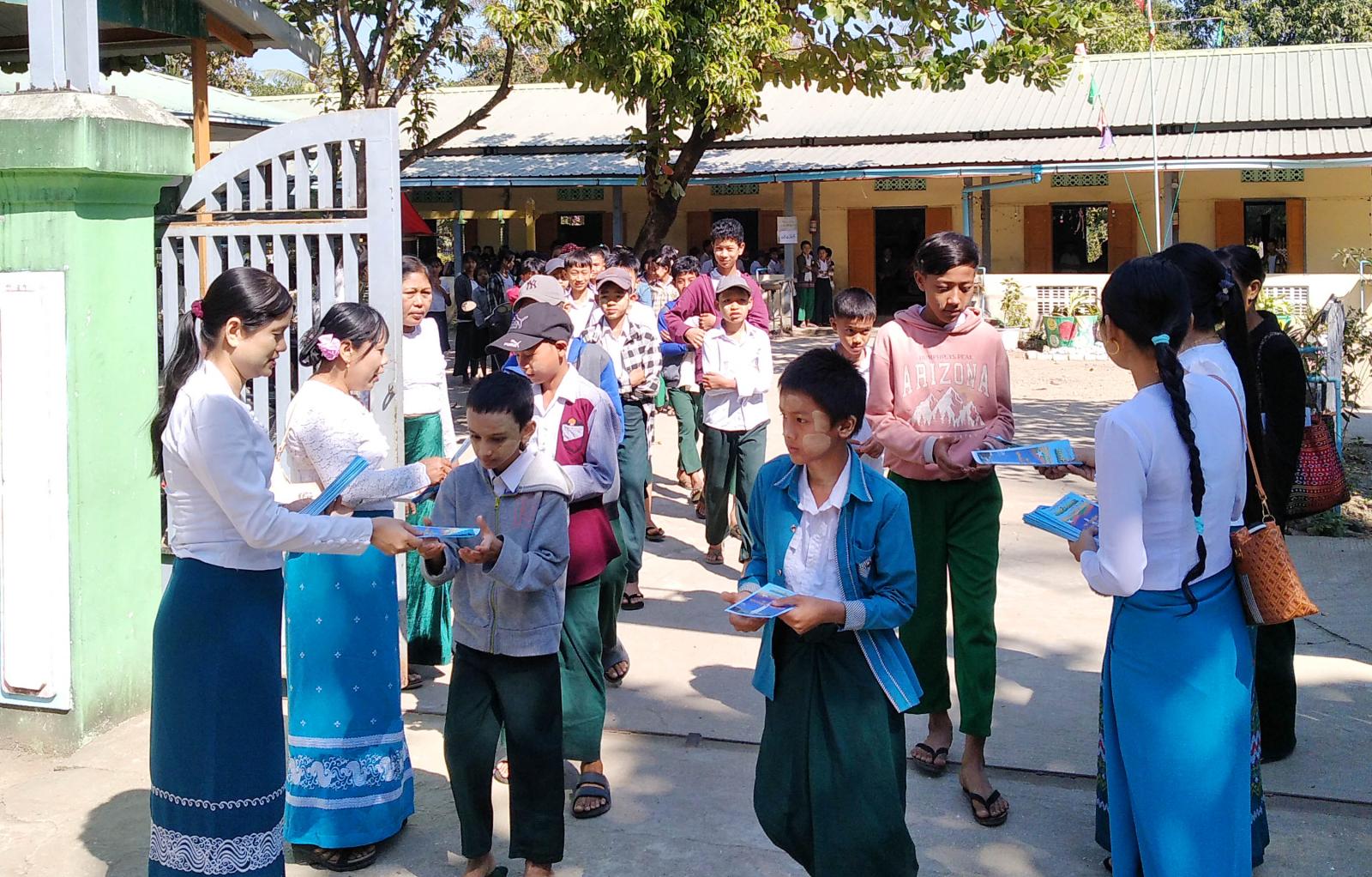 ပြန်ကြားရေးနှင့်ပြည်သူ့ဆက်ဆံရေးဦးစီးဌာန(ရုံးချုပ်)မှ ထုတ်ဝေသည့် (၇၈)နှစ်မြောက် လွတ်လပ်ရေးနေ့အထိမ်းအမှတ် သတင်းစကားလက်ကမ်းစာစောင်များကို မြို့နယ်ပြန်ကြားရေးနှင့်ပြည်သူ့ဆက်ဆံရေးဦးစီးဌာန၊ မြို့နယ်ရုံးဝန်ထမ်းများက ကျောင်းသား၊ ကျောင်းသူများ လက်ဝယ်အရောက် အခမဲ့ဖြန့်ဝေပေးခဲ့ကြောင်း သိရသည်။