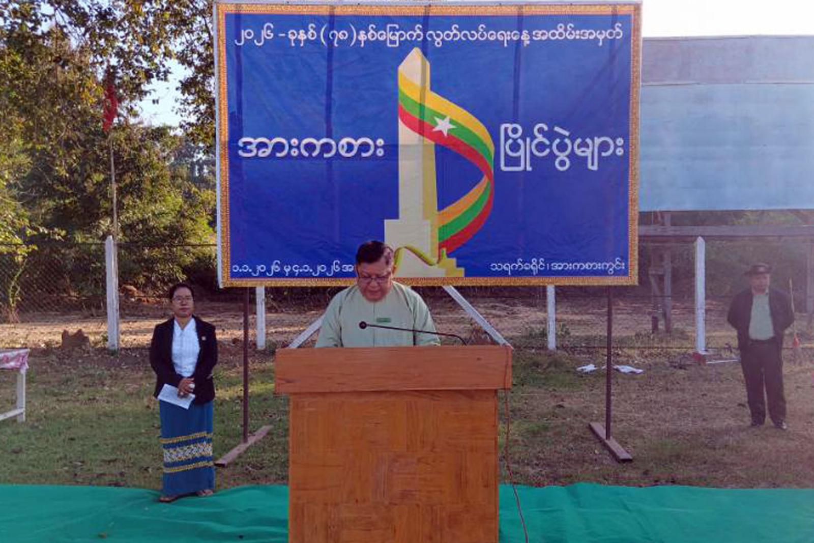 အဆိုပါအခမ်းအနားတွင် ခရိုင်စီမံခန့်ခွဲရေးနှင့်အုပ်ချုပ်ရေးကော်မတီဥက္ကဋ္ဌ ဦးမြတ်ထွန်းဦးက အဖွင့်အမှာစကားပြောကြားရာမှာ လွတ်လပ်ရေးနေ့အထိမ်းအမှတ်အဖြစ် အားကစားပြိုင်ပွဲများ စည်ကားသိုက်မြိုက်စွာကျင်းပရာတွင် အားကစားလူငယ်မောင်မယ်များမှ အားကစားသမားစိတ်ဓာတ်အပြည့်ဖြင့် လာရောက်ယှဉ်ပြိုင်ကြသည်ကို တွေ့ရှိရသဖြင့် ဝမ်းမြောက်ကျေနပ်အားရမိပါကြောင်း ပြည်ထောင်စုသမ္မတနိုင်ငံတော်အစိုးရအနေဖြင့် အေးချမ်းသာယာပြီး ခေတ်မီဖွံ့ဖြိုးတိုးတက်သည့် နိုင်ငံတော်အဖြစ် ပေါ်ထွန်းလာစေရန် ကြိုးပမ်းဆောင်ရွက်လျက်ရှိရာတွင် နိုင်ငံတော်၏ အားကစားအဆင့်အတန်း တိုးတက်မြင့်မားရေးကို နိုင်ငံတော်ဖွံ့ဖြိုးတိုးတက်ရေးမှာအရေးပါတဲ့ ကဏ္ဍတစ်ရပ်အဖြစ် အလေးထားပြီး ရေတို၊ ရေရှည် စီမံချက်များ ချမှတ်အကောင်အထည်ဖော်ဆောင်ရွက်လျက်ရှိရာ အားလုံးအသိဖြစ်ပါကြောင်း ပြောကြားပေးခဲ့ပြီး ပြိုင်ပွဲကို ဖွင့်လှစ်ပေးခဲ့သည်။