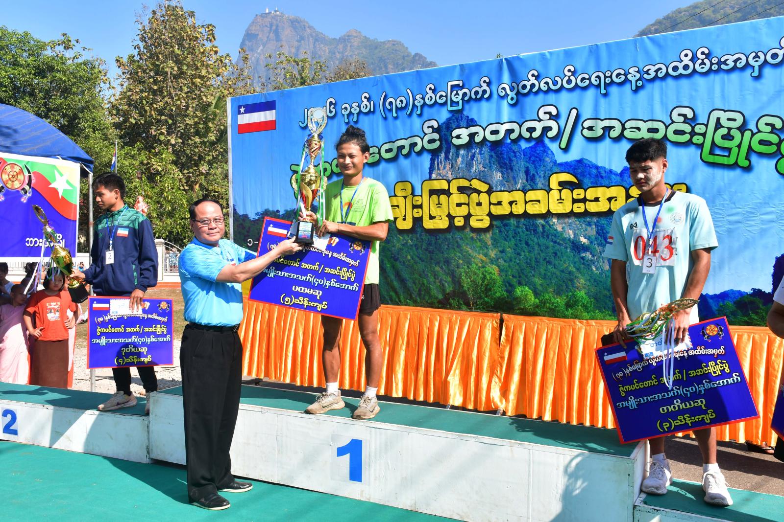 ပြိုင်ပွဲများအပြီးတွင် ဆုချီးမြှင့်ပွဲကို ဆက်လက်ကျင်းပရာ ပြည်နယ်အမျိုးသမီးရေးရာအဖွဲ့နှင့်မိခင်နှင့်ကလေးစောင့်ရှောက်မှုကြီးကြပ်ရေးအဖွဲ့ဝင်များက အမျိုးသမီးအသက် (၄၀) နှစ် အထက်ပြိုင်ပွဲတွင် နှစ်သိမ့်ဆု ၆ မှ ၃၅ ထိရရှိကြသူများနှင့် ပဥ္စမ၊ စတုတ္ထ၊ တတိယ၊ ဒုတိယနှင့် ပထမရရှိကြသူများကိုလည်းကောင်း၊ အမျိုးသမီးအသက် (၄၀) နှစ် အောက်ပြိုင်ပွဲတွင် နှစ်သိမ့်ဆု ၆ မှ ၅၀ ထိရရှိကြသူများကိုလည်းကောင်း၊ ပြည်နယ်အစိုးရအဖွဲ့ဝင်များနှင့်ပြည်နယ်တရားလွှတ်တော်တရားသူကြီးချုပ်တို့က အမျိုးသားအသက် (၄၀) နှစ်အထက်ပြိုင်ပွဲတွင် နှစ်သိမ့်ဆု ၆ မှ ၃၅ ထိရရှိကြသူများ၊ ပဥ္စမ၊ စတုတ္ထ၊ တတိယ၊ ဒုတိယနှင့် ပထမရရှိကြသူများ၊ (၄၀) နှစ်အောက်ပြိုင်ပွဲတွင် နှစ်သိမ့်ဆု ၆ မှ ၅၀ ထိရရှိကြသူများကိုလည်းကောင်း တစ်ဦးချင်းလည်ဆွဲဆု၊ ငွေသားဆုနှင့်ဆုကလပ်များကို ပေးအပ်ချီးမြှင့်ပြီး ပြည်နယ်အမျိုးသမီးရေးရာအဖွဲ့နှင့် မိခင်နှင့်ကလေးစောင့်ရှောက်မှုကြီးကြပ်ရေးအဖွဲ့နာယကက အမျိုးသမီးအသက်အကြီးဆုံးပြိုင်ပွဲဝင်နှစ်ဦးနှင့် အသက်အငယ်ဆုံးနှစ်ဦးတို့အား အထူးဆု၊ အမျိုးသမီးအသက် (၄၀) နှစ်အောက်ပြိုင်ပွဲတွင် ပဥ္စမ၊ စတုတ္ထ၊ တတိယ၊ ဒုတိယနှင့် ပထမဆုရရှိကြသူများအား တစ်ဦးချင်းလည်ဆွဲဆု၊ ငွေးသားဆုနှင့် ဆုကလပ်များကို ပေးအပ်ချီးမြှင့်ကာ ပြည်နယ်ဝန်ကြီးချုပ် ဦးစောမြင့်ဦးက ပြိုင်ပွဲဝင်အသက်အကြီးဆုံးနှစ်ဦးနှင့်အသက်အငယ်ဆုံးနှစ်ဦးတို့အား အထူးဆုနှင့် အမျိုးသားအသက် (၄၀) နှစ်အောက် ပြိုင်ပွဲ ပဥ္စမ၊ စတုတ္ထ၊ တတိယ၊ ဒုတိယနှင့် ပထမဆုရရှိကြသူများအား တစ်ဦးချင်းလည်ဆွဲဆု၊ ငွေသားဆုနှင့်ဆုကလပ်များကို ပေးအပ်ချီးမြှင့်ခဲ့ကြကြောင်း သိရသည်။
