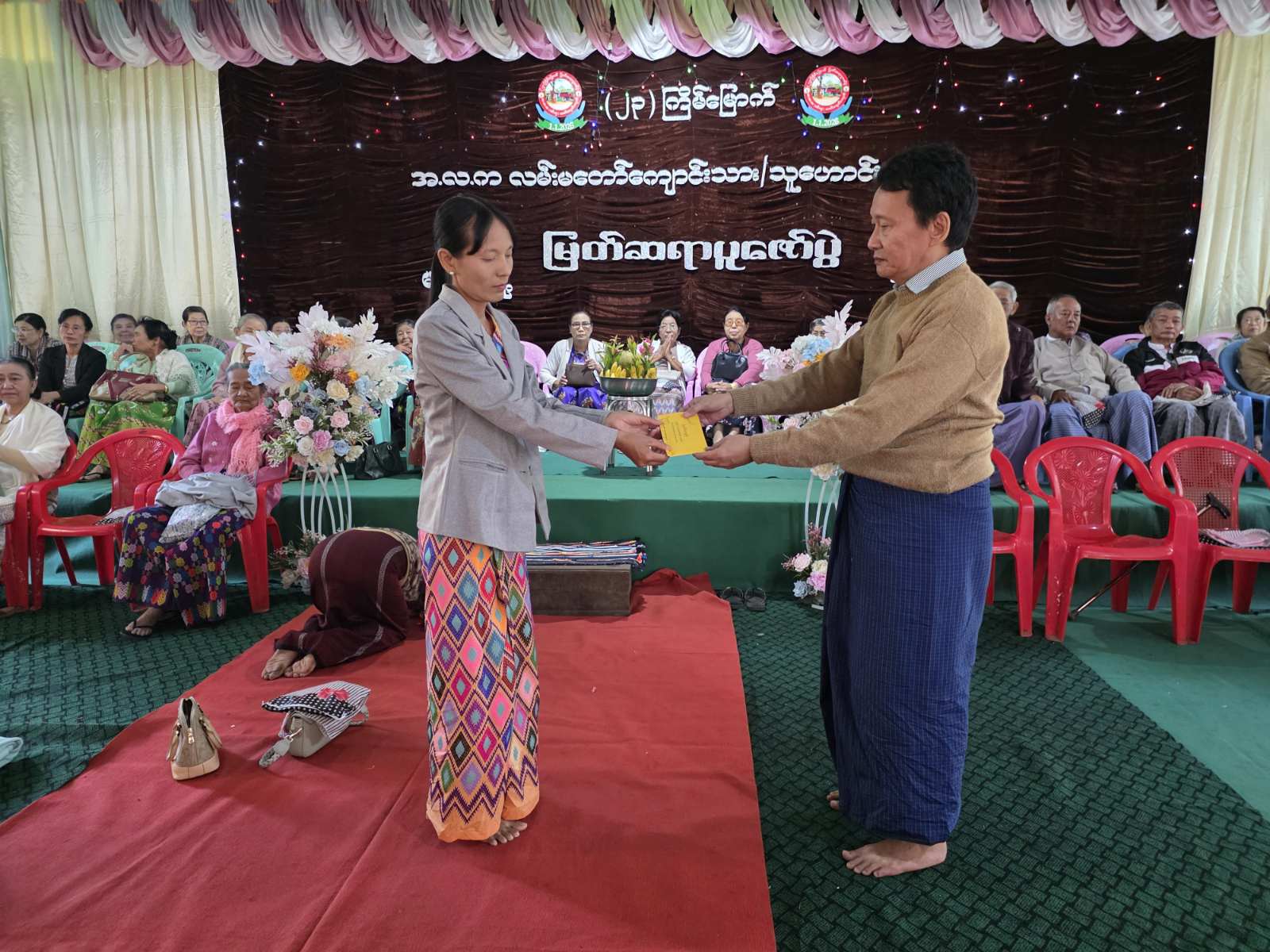 ရှေးဦးစွာ မြတ်ဆရာပူဇော်ပွဲကို နမောတဿသုံးကြိမ်ရွတ်ဆိုဖွင့်လှစ်ပြီး ကန်တော့ခံဆရာကြီး ဆရာကြီး (၅၃) ဦးအနက်မှ အသက် (၈၀) နှစ်နှင့်အထက်ဆရာ(၉)ဦးအားတစ်ဦးလျှင် ကန်တော့ငွေ (၂၁၀၀၀၀) ကျပ်၊ အသက် (၇၀) နှစ်နှင့်အထက်ဆရာ (၂၁) ဦးအား တစ်ဦးလျှင် ကန်တော့ငွေ (၂၀၀၀၀၀) ကျပ်၊ (၆၀) နှစ်နှင့်အထက်ဆရာ (၂၃) ဦးအား တစ်ဦးလျှင်ကန်တော့ငွေ (၁၉၀၀၀၀) ကျပ်နှင့် ခရီးစရိတ်ငွေများ လှူဒါန်းခြင်း၊ တပည့်ဟောင်းများက လက်ဆောင်ပစ္စည်းများ လှူဒါန်းပေးခဲ့၍ အ.လ.က လမ်းမတော်ကျောင်းအတွက် အလှူငွေများကိုလည်း လှူဒါန်းပေးခဲ့သည်။