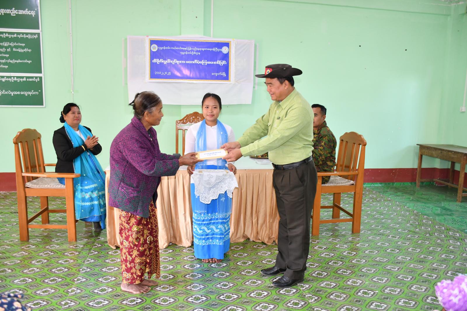 အခမ်းအနားတွင် ကျောက်မဲမြို့နယ်စီမံခန့်ခွဲရေးနှင့်အုပ်ချုပ်ရေးကော်မတီဥက္ကဋ္ဌ ဦးစိုးညွှန့်ရွှေက ကျောက်မဲမြို့ကို တပ်မတော်မှ ပြန်လည်ထိန်းချုပ်ပြီးနောက်ပိုင်း ပြန်လည်ထူထောင်ချိန်အတွင်း ထိခိုက်လွယ်အုပ်စုတွင် ပါဝင်သောသူများ စိတ်ခွန်အားများ ရရှိစေရန်ရည်ရွယ်၍ နိုင်ငံတော်မှ ထောက်ပံငွေများ ပေးအပ်ရခြင်းဖြစ်ကြောင်း ရှင်းလင်းပြောကြားခဲ့သည်။ ယင်းနောက် ကျောက်မဲခရိုင် လူမှုဝန်ထမ်းဦးစီးဌာနမှ ခရိုင်ဦးစီးမှူးဒေါ်စန်းစန်းရီ၊ မြို့နယ်စီမံခန့်ခွဲရေးနှင့် အုပ်ချုပ်ရေး ကော်မတီ ဥက္ကဌ ဦးစိုးညွှန့်ရွှေနှင့်အဖွဲ့ဝင်များက ကာယကံရှင်များအား ထောက်ပံ့ငွေများအသီးသီး ပေးအပ်ခဲ့ကြသည်။