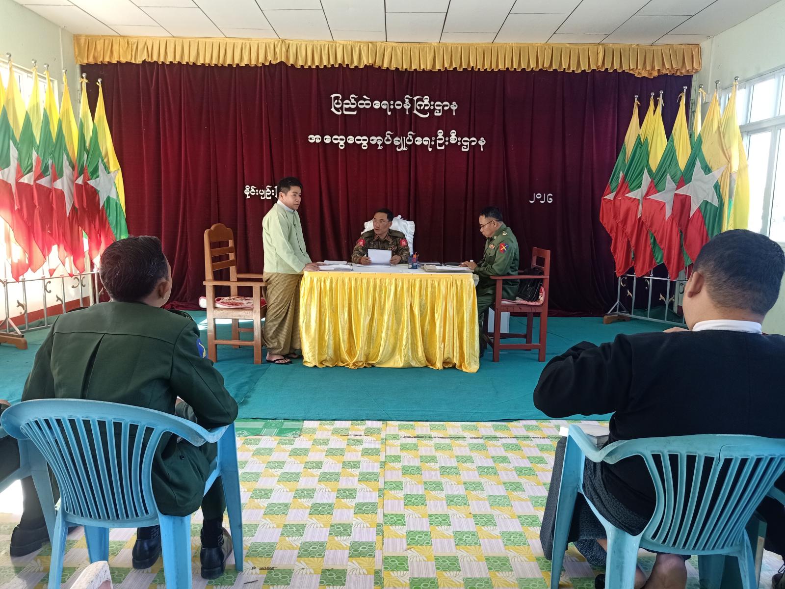 အဆိုပါ လုပ်ငန်းညှိနှိုင်းအစည်းအဝေးသို့ စစ်ဗျူဟာမှူး၊ တပ်နယ်မှူးနှင့် တပ်နယ်မှအရာရှိများ၊ မြို့နယ်စီမံခန့်ခွဲရေးနှင့်အုပ်ချုပ်ရေးကော်မတီဥက္ကဌနှင့် အဖွဲ့ဝင်များ၊ မြို့နယ်ရွေးကောက်ပွဲကော်မရှင်ဥက္ကဋ္ဌနှင့် အဖွဲ့ဝင်များ၊ ရပ်ကွက်/ကျေးရွာအုပ်ချုပ်ရေးမှူးများနှင့် ရပ်ကျေးစာရေးများ၊ ဌာနဆိုင်ရာတာဝန်ရှိသူများ၊ ပြည်သူ့လုံခြုံရေးနှင့် အကြမ်းဖက်နှိမ်နင်းရေးအဖွဲ့ဝင်များနှင့် မြို့နယ်ပြည်သူ့စစ်အဖွဲ့ဝင်များ တက်ရောက်ခဲ့ကြကြောင်း၊ သတင်းရရှိသည်။