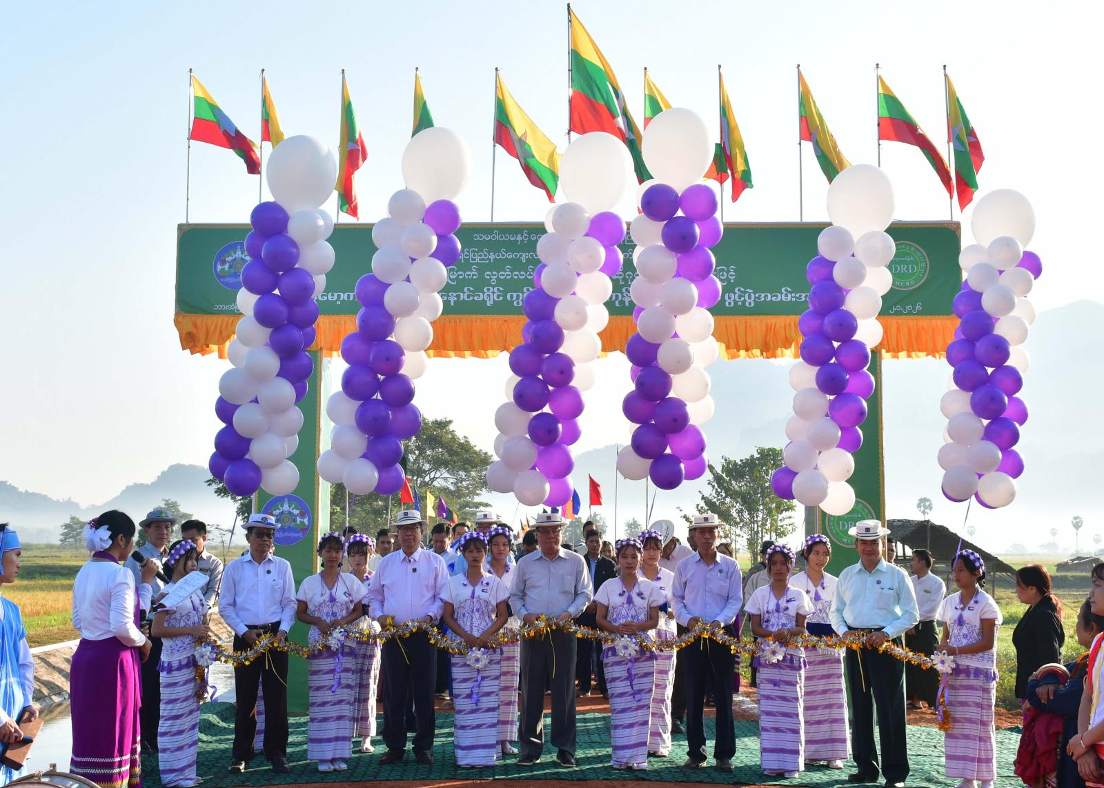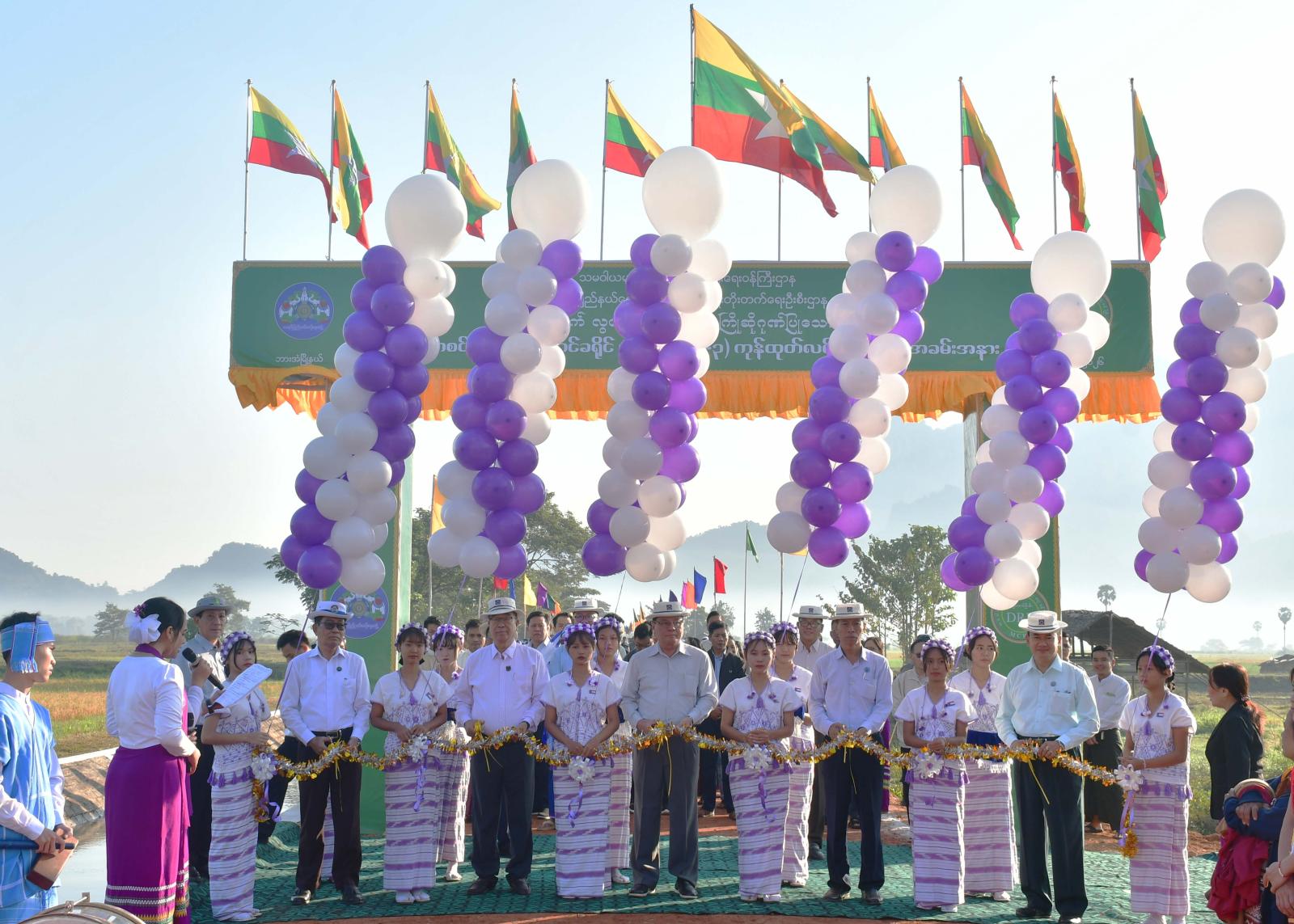 ဦးစွာ ကရင်ပြည်နယ်ဝန်ကြီးချုပ်ဦးစောမြင့်ဦး၊ ပြည်နယ်တရားလွှတ်တော်တရားသူကြီးချုပ် ဦးညွန့်လင်းနှင့် ပြည်နယ်အစိုးရအဖွဲ့ဝင်များက အရှည် ၅ ဖာလုံခွဲ၊ အကျယ် ၁၂ ပေ၊ Box Culvert ၂ စင်းပါဝင်သော ကုန်ထုတ်လမ်းသစ်ကို ဖဲကြိုးဖြတ်ဖွင့်လှစ်ပေးကြပြီး ကုန်ထုတ်လမ်းဖွင့်ပွဲတွင် ပါဝင်အားဖြည့်ကူညီပေးကြသော ယဉ်ကျေးမှုအဖွဲ့များနှင့် စုပေါင်းမှတ်တမ်းဓာတ်ပုံများရိုက်ကူး၍ ဂုဏ်ပြုဆုများ ပေးအပ်ချီးမြှင့်ကြကာ ပြည်နယ်ဝန်ကြီးချုပ်နှင့်တာဝန်ရှိသူများက ကုန်ထုတ်လမ်းသစ်ကို ဖြတ်သန်းကြည့်ရှုစစ်ဆေးခဲ့ကြသည်။