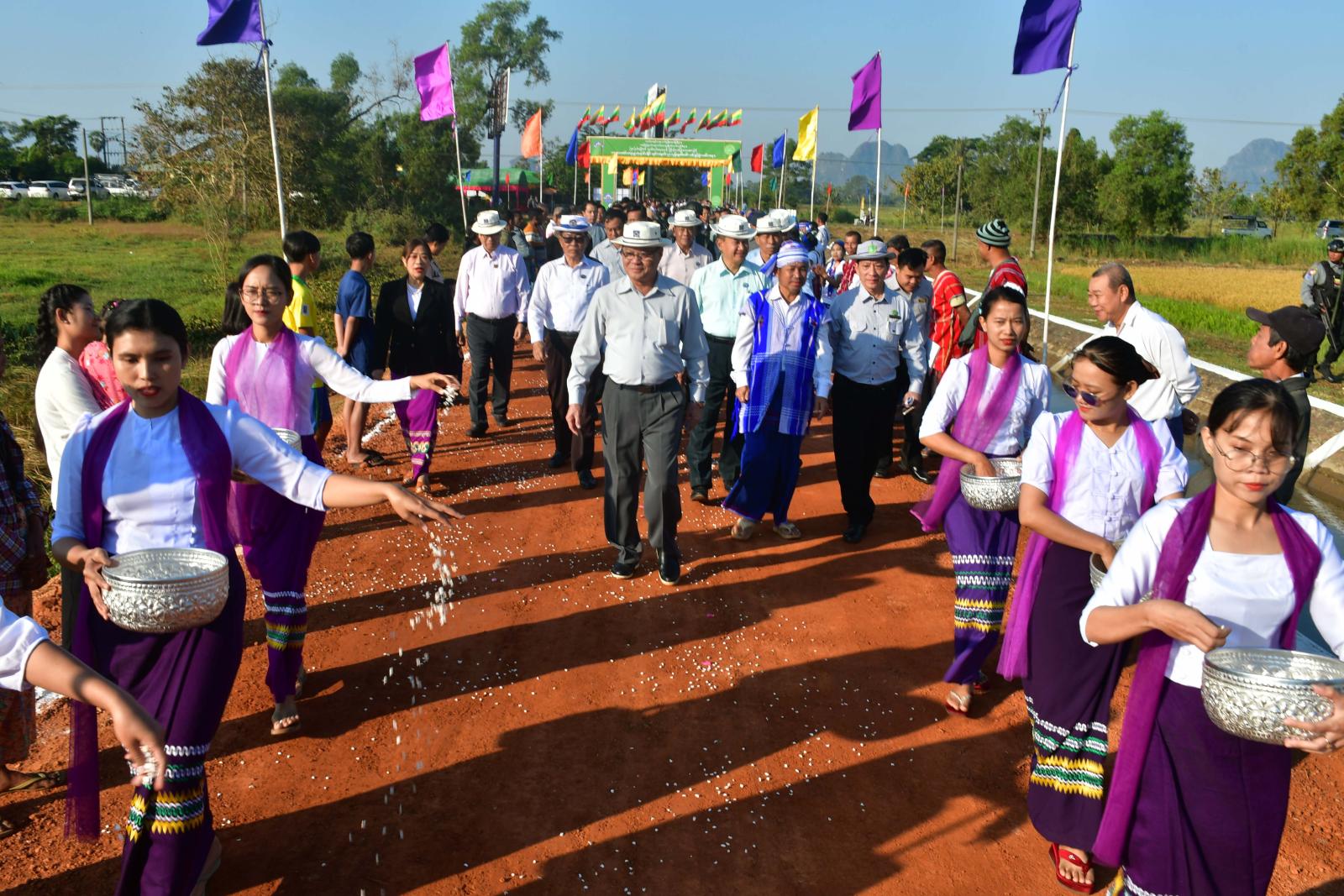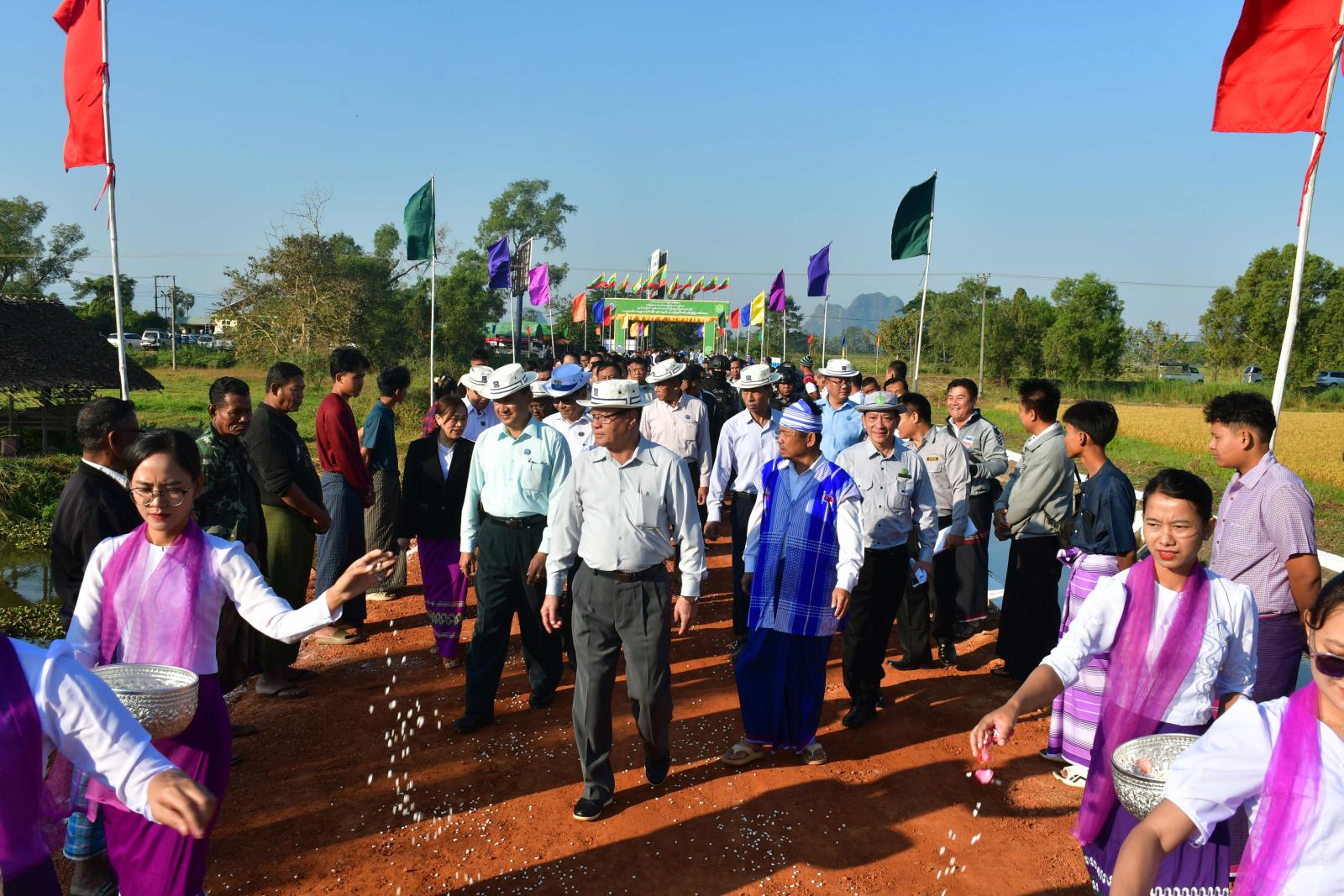 ယင်းနောက် ပြည်နယ်ကျေးလက်ဒေသဖွံ့ဖြိုးတိုးတက်ရေးဦးစီးဌာနညွှန်ကြားရေးမှူးဦးဝင်းနိုင်က ကုန်ထုတ်လမ်း နှင့်ပတ်သက်၍ ရှင်းလင်းတင်ပြပြီး ဒေသခံပြည်သူတစ်ဦးက ကျေးဇူးတင်စကား ပြန်လည်ပြောကြားကာ ပြည်နယ်ဝန်ကြီးချုပ်နှင့် တာဝန်ရှိသူများက ကုန်ထုတ်လမ်းဖွင့်ပွဲသို့ တက်ရောက်လာသော တောင်သူဦးကြီးများနှင့် ဒေသခံပြည်သူများအား ရင်းနှီးနွေးထွေးစွာ တွေ့ဆုံနှုတ်ဆက်၍ အားပေးစကားများ ပြောကြားခဲ့ကြောင်း သိရသည်။
