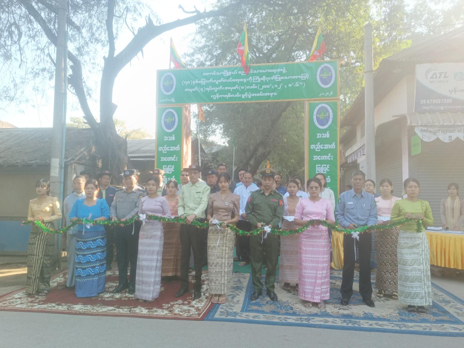 ရှေးဦးစွာ ဖွင့်ပွဲအခမ်းအနားအား မြို့နယ်စီမံခန့်ခွဲရေးနှင့်အုပ်ချုပ်ရေးကော်မတီဥက္ကဋ္ဌ ဦးဟန်သူရမှ အဖွင့်အမှာစကားပြောကြားပြီး မြို့နယ်စီမံခန့်ခွဲရေးနှင့်အုပ်ချုပ်ရေးကော်မတီဥက္ကဋ္ဌ ဦးဟန်သူရ၊ အဖွဲ့ဝင် ဗိုလ်မှူးဇေယျကျော်စွာ၊ မြို့နယ်ရဲတပ်ဖွဲ့မှူး ဒုရဲမှူး ကျော်ဇာလင်း၊ မြို့နယ်စီမံကိန်းရေးဆွဲရေး ဦးစီးဌာနမှ ဦးစီးမှူး ဦးအောင်ဌေးနှင့် မြို့နယ်စည်ပင်သာယာရေးအဖွဲ့ အမှုဆောင်အရာရှိ ဦးချမ်းငြိမ်းတို့မှ ဖဲကြိုးဖြတ်ဖွင့်လှစ်ပေးခဲ့ကြောင်း သိရသည်။