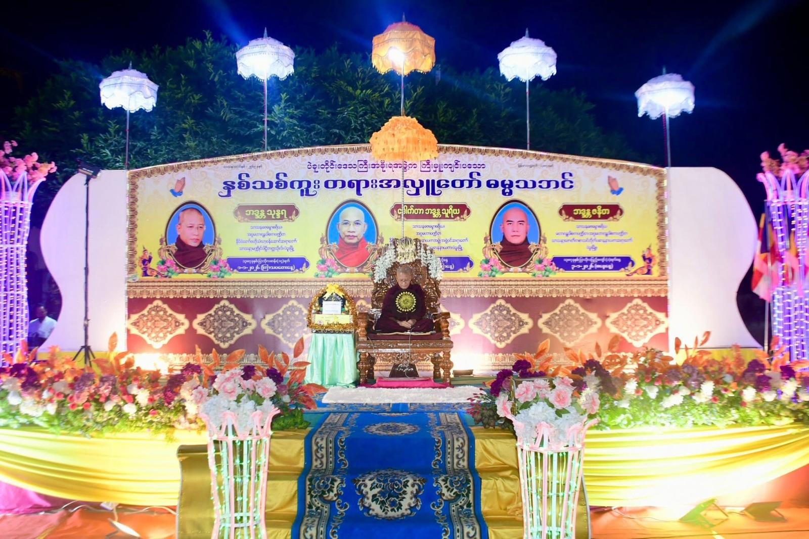 ထို့နောက် နိုင်ငံတော်ဗဟိုသံဃာ့ဝန်ဆောင် ပဲခူးမြို့ သာသနာ့မဏ္ဍိုင်ပါဠိတက္ကသိုလ် ကျောင်းတိုက်၊ တိုက်အုပ်စာချဆရာတော် ဘဒ္ဒန္တသုန္ဒရ သာသနဓဇဓမ္မာစရိယ၊ အဂ္ဂမဟာဂန္တဝါစကပဏ္ဍိတက မြင်း (၄) ကောင်နှင့် လူ (၄) ယောက်တရားခေါင်းစဉ်ဖြင့် နိဗ္ဗာန်ရောက်ကြောင်း သိကောင်းစရာတရားတော်မြတ်ကို ဟောကြားတော်မူခဲ့ကာ ပဲခူးတိုင်းဒေသကြီး ဝန်ကြီးချုပ် ဦးမျိုးဆွေဝင်းက လှူဖွယ်ဝတ္ထုပစ္စည်းနှင့် ဓမ္မပူဇာအလှူငွေ (၇၅) သိန်းကျပ်တို့အား ဆက်ကပ်လှူဒါန်းပြီး နိုင်ငံတော်ဗဟိုသံဃာ့ဝန်ဆောင် ပဲခူးမြို့ သာသနာ့မဏ္ဍိုင် ပါဠိတက္ကသိုလ်ကျောင်း တိုက်၊ တိုက်အုပ်စာချဆရာတော် ဘဒ္ဒန္တသုန္ဒရ သာသနဓဇဓမ္မာစရိယ၊ အဂ္ဂမဟာဂန္တဝါစကပဏ္ဍိတက ရွှေမော်ဓောစေတီတော်မြတ်ကြီး ရွှေသင်္ကန်းကပ်လှူရန် အလှူငွေကျပ် (၁၀) သိန်း ပြန်လည်လှူဒါန်းခဲ့ကာ လှူဒါန်းမှုအစုစုအတွက် ရေစက်သွန်ချ အမျှအတမ်း ပေးဝေခဲ့ကြောင်း သိရသည်။