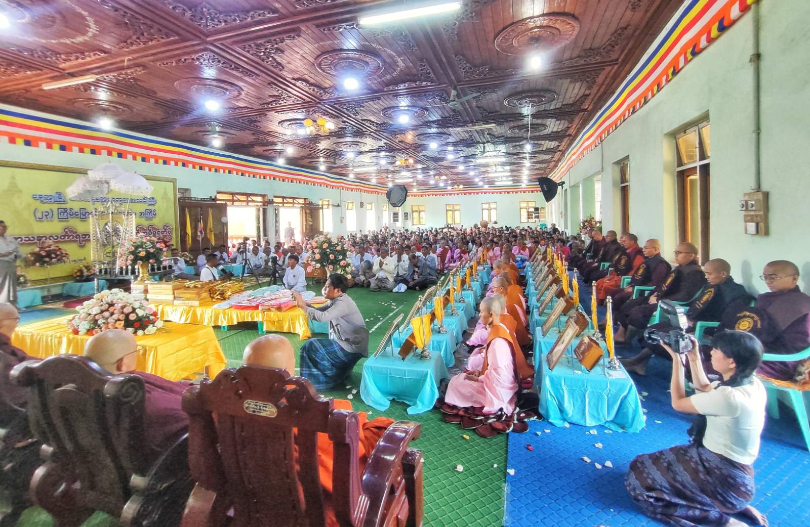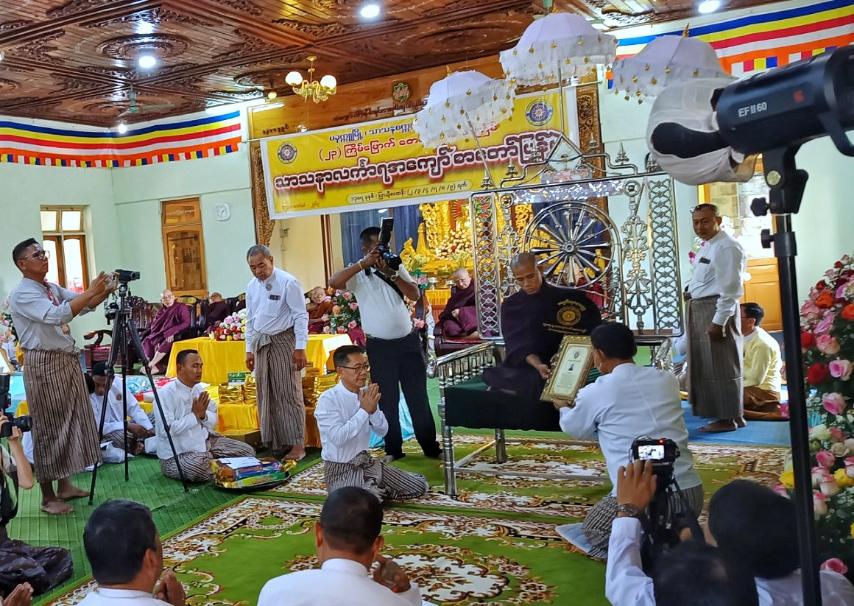 ဆက်လက်၍ ပခုက္ကူမြို့၊ သာသနစက္ကပ္ပဝတ္တကအသင်းကြီး၏ (၂၃)ကြိမ်မြောက် သာသနာလင်္ကာရအကျော်စာတော်ပြန်ပွဲတွင် ဖြေဆိုအောင်မြင်တော်မူကြသော ရဟန်း၊ သာမဏေ ၉ ပါးအား “အာဇည” ဘွဲ့တံဆိပ်တော်နှင့် သီလရှင် ၉ ပါးအား “သုဘဒ္ဒါ” ဘွဲ့တံဆိပ်တော်များ၊ ဘွဲ့တံဆိပ်တုံး၊ ဘွဲ့သေတ္တာနှင့် လှူဖွယ်ဝတ္ထုပစ္စည်းများ ဆက်ကပ်ပူဇော် လှူဒါန်းကြပြီး လှူဒါန်းမှုအစုစုအတွက် ရေစက်သွန်းချအမျှဝေကြသည်။