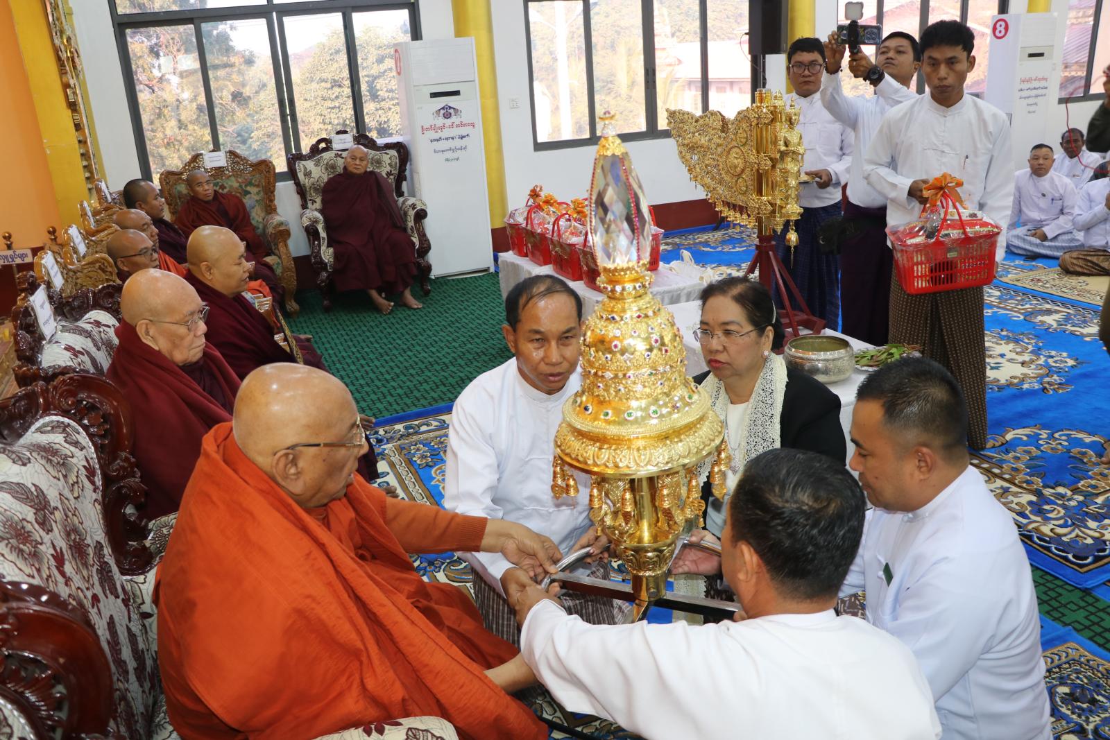 ယင်းနောက် ဩဝါဒါစရိယဆရာတော်ကြီးများအား တိုင်းဒေသကြီးဝန်ကြီးချုပ်နှင့်ဇနီး၊ တိုင်းဒေသကြီးအစိုးရအဖွဲ့ဝင်များက နေ့ဆွမ်းများဆက်ကပ်လှူဒါန်းခဲ့ကြသည်။