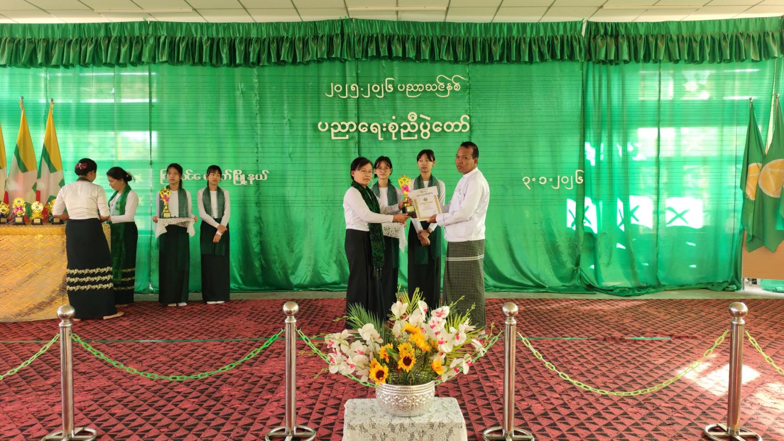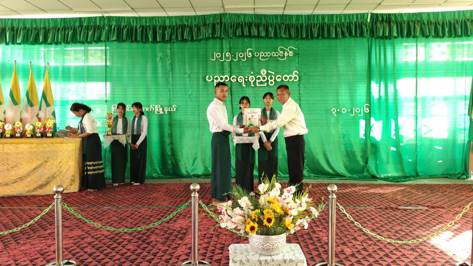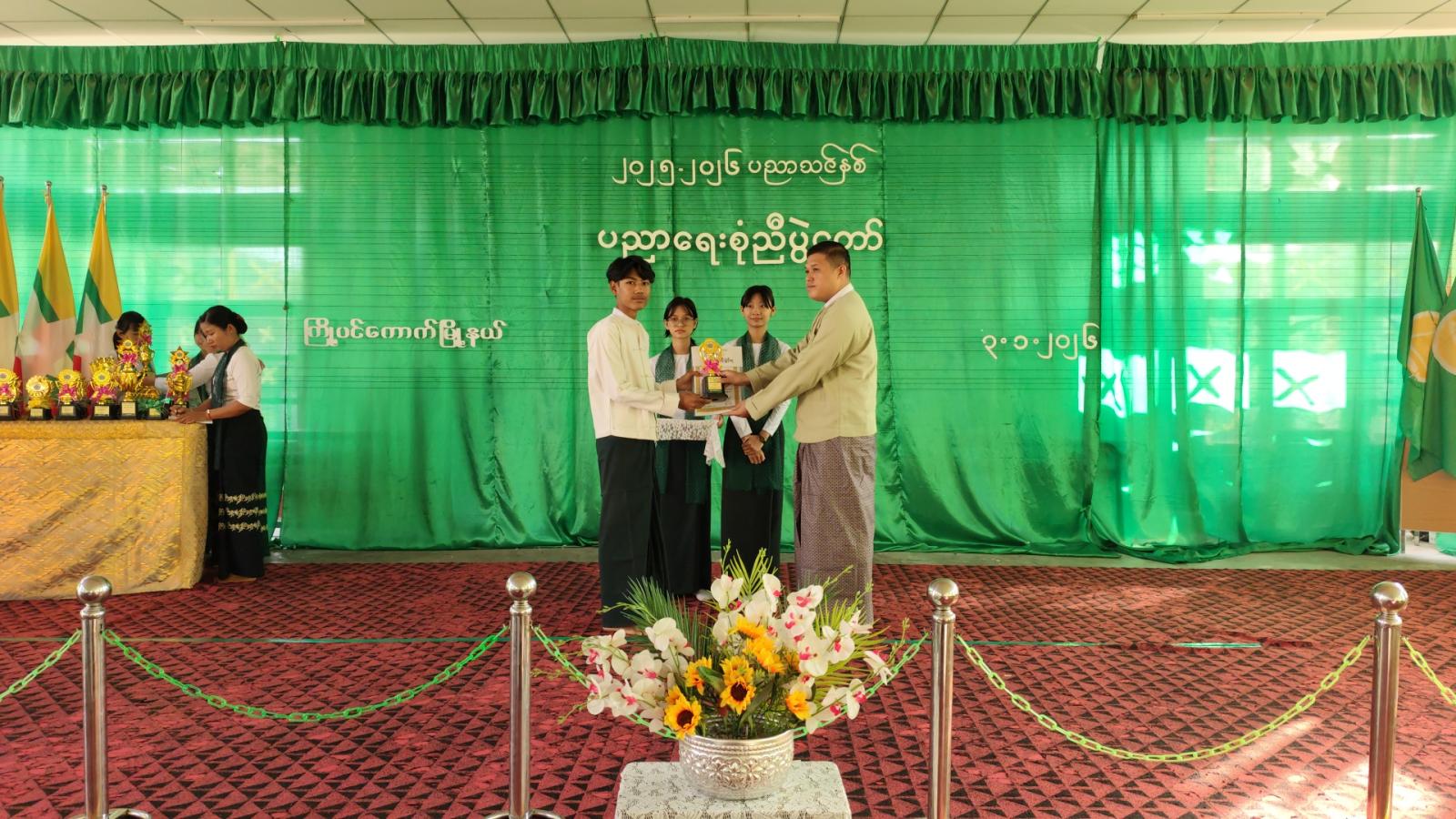 ဆက်လက်ပြီး မြို့နယ်အတွင်းအခြေခံပညာကျောင်းများမှ ပညာရည်ချွန်ဆုရ ကျောင်းသား ကျောင်းသူများနှင့် ကာယ၊ ဉာဏကဏ္ဍအသီးသီး၌ ထူးချွန်ဆုရရှိခဲ့ကြသည့် ကျောင်းသား/ကျောင်းသူများ ၊ တက္ကသိုလ်ဝင်တန်း အောင်ချက်အကာင်းဆုံး အခြေခံပညာကျောင်းအုပ်ဆရာကြီး ဆရာမကြီးများအား မြို့နယ်စီမံခန့်ခွဲရေးနှင့်အုပ်ချုပ်ရေးကော်မတီဥက္ကဋ္ဌနှင့် ဌာနဆိုင်ရာအကြီးအကဲများက ဂုဏ်ပြုမှတ်တမ်းလွှာများနှင့် ဆုငွေများပေးအပ်ချီးမြှင့်ခဲ့ကြသည်။