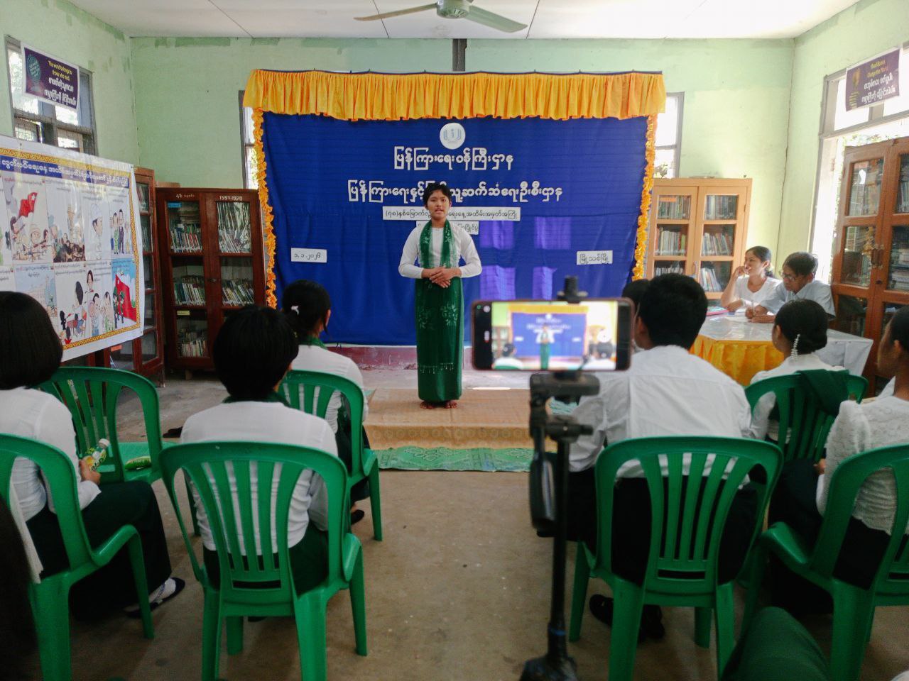 အဆိုပါ (၇၈)နှစ်မြောက် လွတ်လပ်ရေးနေ့အထိမ်းအမှတ် ဗိုလ်ချုပ်မိန့်ခွန်းပြောပြိုင်ပွဲနှင့် ပုံပြင်ပြောပြိုင်ပွဲမစတင်မီ မြို့နယ်စာအုပ်စာစောင်ချစ်မြတ်နိုးသူအသင်း (Book Club)အဖွဲ့ဝင်ဆရာ ဦးတင်မောင်ဝင်းက အကဲဖြတ်အမှတ်ပေးမည့် ပြိုင်ပွဲစည်းမျဉ်းစည်းကမ်းများကို ရှင်းလင်းပြောကြားသည်။