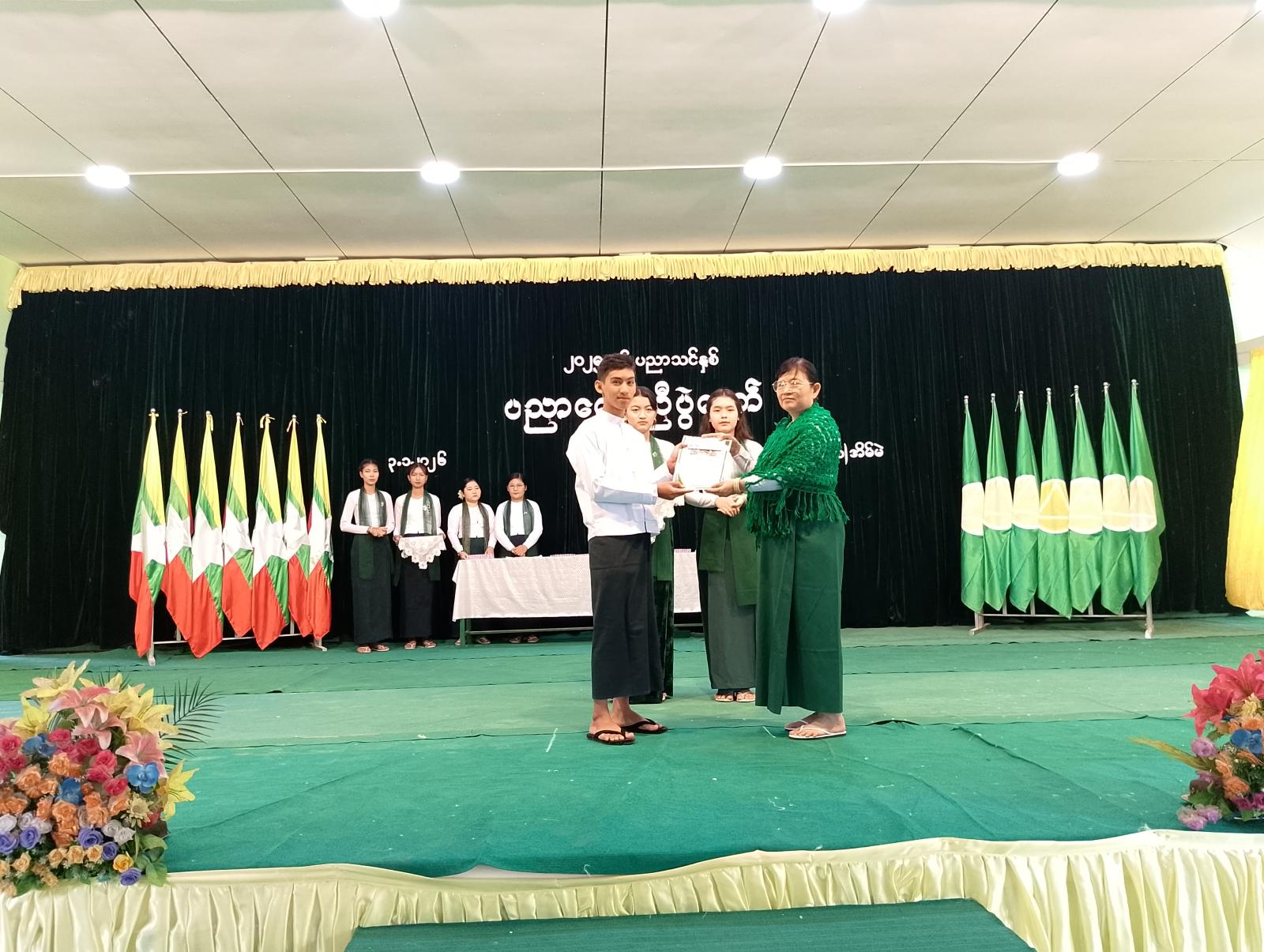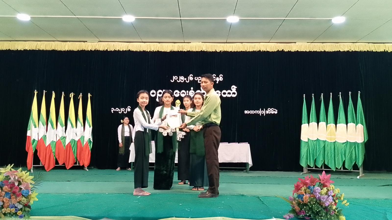 ဆက်လက်ပြီး အ-ထ-က (၁)အိမ်မဲ ဂုဏ်ဆောင် ဘက်စုံထူးချွန်ကျောင်းသား၊ ကျောင်းသူများနှင့် ဆရာ ၊ ဆရာမများအား ထူးချွန်ဆုများကို မြို့နယ်စီမံခန့်ခွဲရေးနှင့်အုပ်ချုပ်ရေးကော်မတီဥက္ကဋ္ဌ၊ မြို့နယ်ဌာနဆိုင်ရာအကြီးအကဲများ၊ ကျောင်းအကျိုးတော်ဆောင်များနှင့် တာဝန်ရှိသူများက ပေးအပ်ခဲ့သည်။