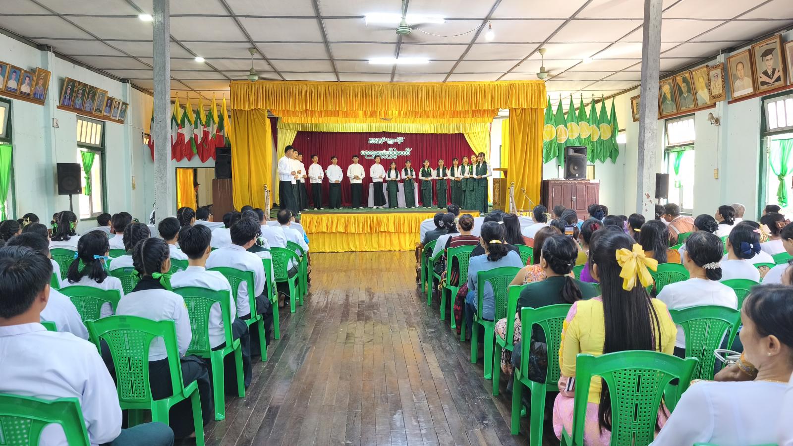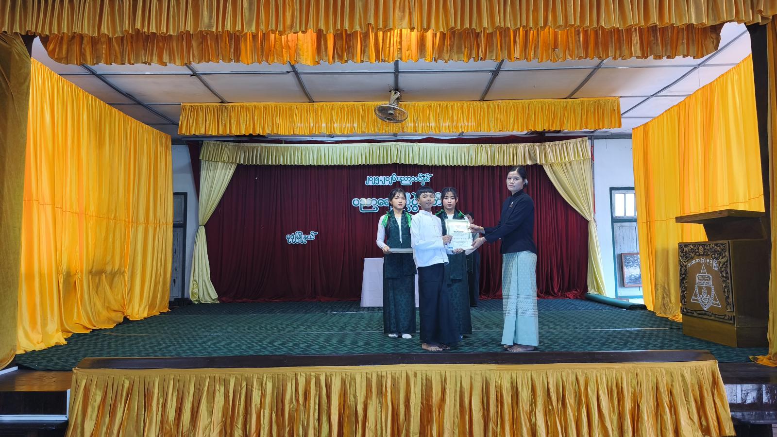 ယင်းနောက် Clean and Green ဆုရကျောင်းများ၊ နိုင်ငံတော်အဆင့် ထူးချွန်ဆုရ ကျောင်းသား၊ ကျောင်းသူများ၊ မြို့နယ်အဆင့် စာပေ၊ ဉာဏ၊ ကာယ၊ အနုပညာ ကဏ္ဍအလိုက် ထူးချွန်ဆုရ ကျောင်းသား၊ ကျောင်းသူလေးများအား တာဝန်ရှိသူများက ဂုဏ်ပြုဆုများ အသီးသီးပေးအပ်ချီးမြှင့်ခဲ့ကြပြီး ကျောင်းသား၊ ကျောင်းသူလေးများက အကအလှ ပဒေသာ၊ တေးသရုပ်ဖော်များဖြင့် တင်ဆက်ကပြဖျော်ဖြေခြင်းနှင့် “ဘက်စုံပညာကိုရည်တို့လှမ်းချီ” တေသီးချင်သီဆို၍ အခမ်းအနားအား ရုပ်သိမ်းခဲ့၍ မြို့နယ်အဆင့်ပညာရေးစုံညီပွဲတော်ကို စည်ကားသိုက်မြိုက်စွာ ကျင်းပခဲ့ကြောင်း သိရသည်။
