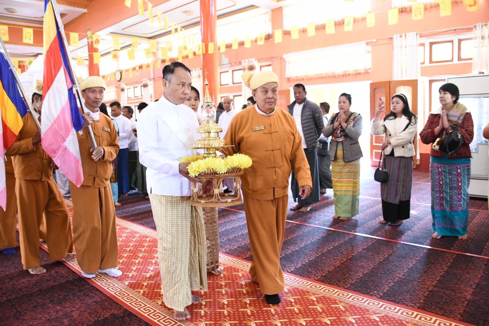 ထို့နောက် ဆရာတော်သံဃာတော် အရှင်သူမြတ်များထံက မေတ္တာသုတ်ပရိတ်တရားတော်များနာကြားခဲ့ပြီး အရှေ့မြောက်တိုင်းစစ်ဌာနချုပ်တိုင်းမှူးနှင့် တာဝန်ရှိသူများက လှူဖွယ်ဝတ္ထု အစုစုတို့အား ဆက်ကပ်လှူဒါန်းကာ ဆရာတော်အရှင်သူမြတ်များထံမှ ဩဝါဒကထာခံယူ၍ လှူဖွယ်ဝတ္ထုအစုစုတို့အတွက် ရေစက်သွန်းချအမျှပေးဝေခဲ့သည်။