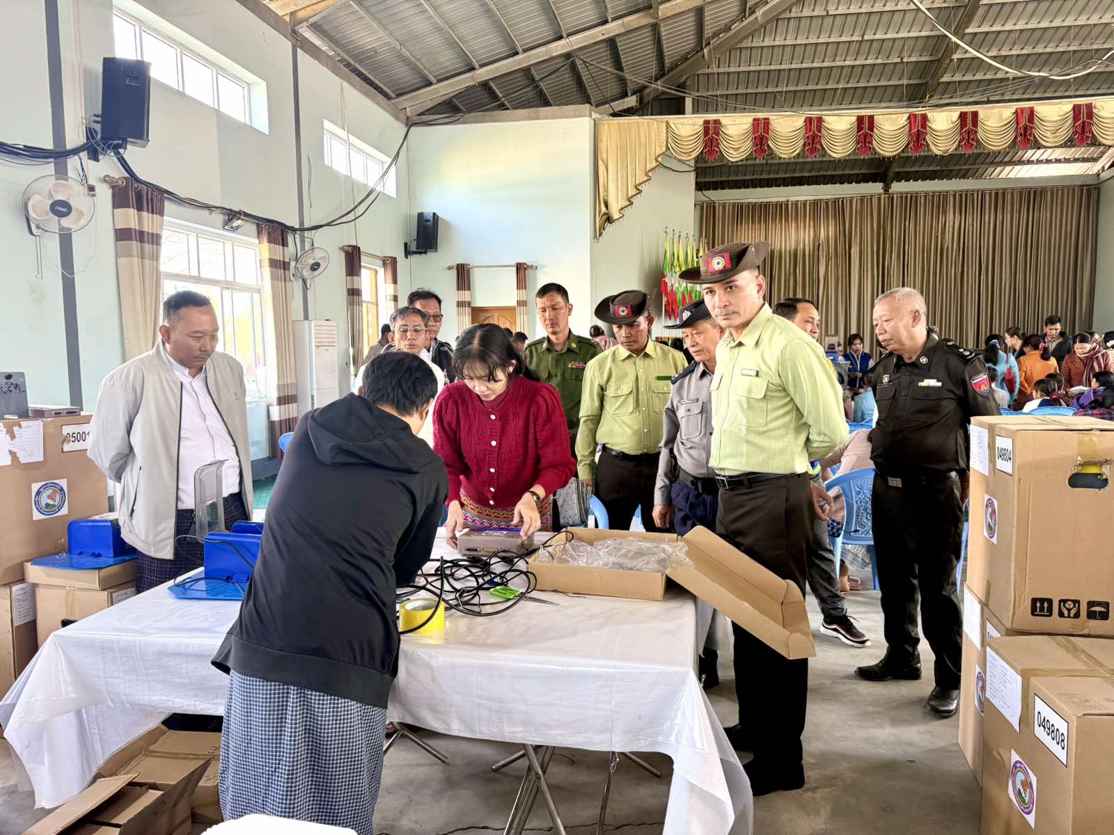 မန္တလေးတိုင်းဒေသကြီး၊ တံတားဦးခရိုင်၊ တံတားဦးမြို့နယ်၌ အမှတ်(၂)ရပ်ကွက် ဆုံကုန်းရပ်ရှိ မြို့နယ်ခန်းမ၌ MEVM စက်များအား MEVM နည်းပညာအထောက်ကူပြုအဖွဲ့များမှ Software ထည့်သွင်းခြင်း၊ စမ်းသပ်တပ်ဆင်ခြင်းနှင့် လက်တွေ့သင်တန်းပို့ချခြင်းများကို ယမန်နေ့ နံနက်ပိုင်းက ကျင်းပကြောင်း သိရသည်။