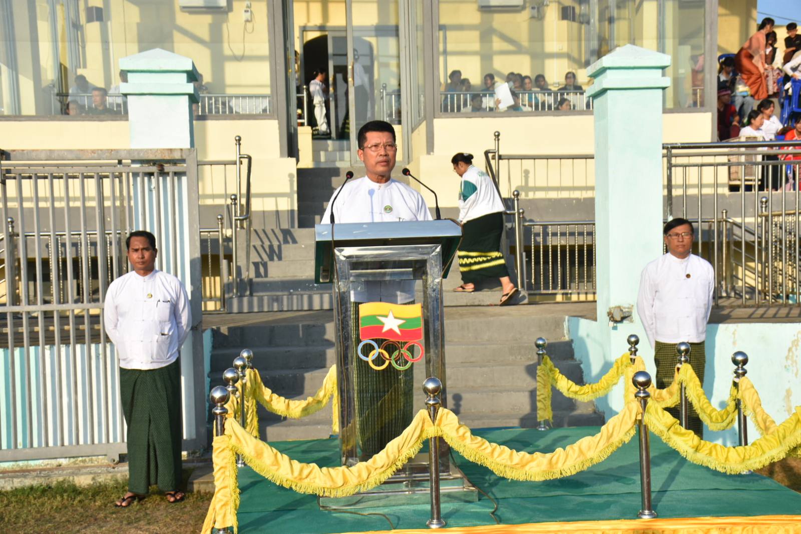 ၂၀၂၅-၂၀၂၆ ပညာသင်နှစ်၊ ဧရာဝတီတိုင်းဒေသကြီး ပညာရေးစုံညီပွဲတော် ဖွင့်ပွဲအခမ်းအနားကို ယမန်နေ့နံနက်ပိုင်းက ပုသိမ်မြို့၊ ကိုးသိန်းအားကစားကွင်းတွင်ပြုလုပ်ခဲ့ရာ အခမ်းအနားသို့ အခမ်းအနားသို့ တိုင်းဒေသကြီးဝန်ကြီးချုပ် ဦးတင်မောင်ဝင်းနှင့် ဇနီး၊ အစိုးရအဖွဲ့ဝင် ဝန်ကြီးများနှင့် ၎င်းတို့၏ဇနီးများ၊ ဌာနဆိုင်ရာများ၊ ကျောင်းသား၊ ကျောင်းသူများ တက်ရောက်ခဲ့ကြသည်။