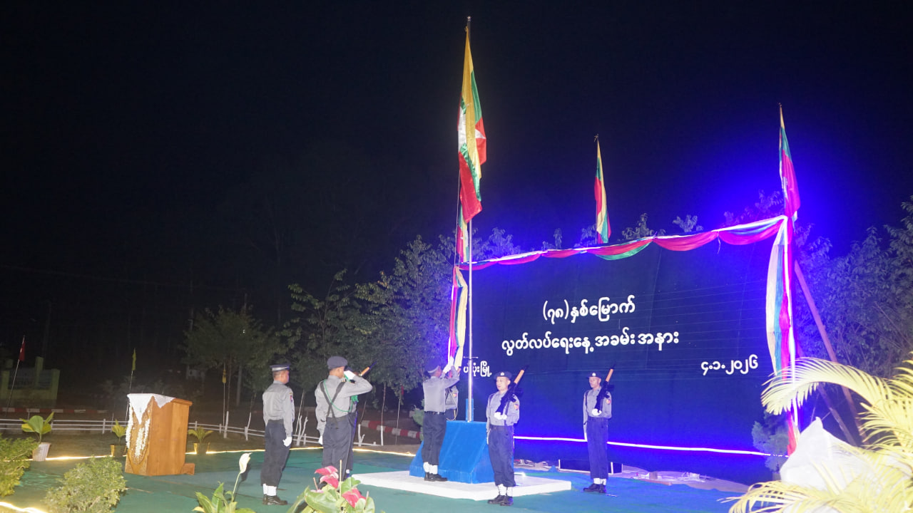 ရှေးဦးစွာ ပြည်ထောင်စုသမ္မတမြန်မာနိုင်ငံတော်အလံကို မြန်မာနိုင်ငံရဲတပ်ဖွဲ့၊ ဂုဏ်ပြုတပ်ဖွဲ့မှ အလံတိုင်ထိပ်သို့လွှင့်တင်ပြီး မြန်မာနိုင်ငံတော်အလံအား ဂုဏ်ပြုတပ်ဖွဲ့ဝင်များနှင့်အတူ တက်ရောက်လာသည့် ပအိုဝ်းကိုယ်ပိုင်အုပ်ချုပ်ခွင့်ရဒေသ ဦးစီးအဖွဲ့ဥက္ကဋ္ဌ ဦးခွန်ရဲထွေးနှင့်အဖွဲ့ဝင်များ၊ မြို့နယ်စီမံခန့်ခွဲရေးနှင့်အုပ်ချုပ်ရေးကော်မတီဥက္ကဋ္ဌ ဦးခွန်သိန်းရွှေနှင့်အဖွဲ့ဝင်များ၊ ဒေသ/မြို့နယ်အဆင့်ဌာနဆိုင်ရာများက အတူတကွအလေးပြုခဲ့ကြသည်။