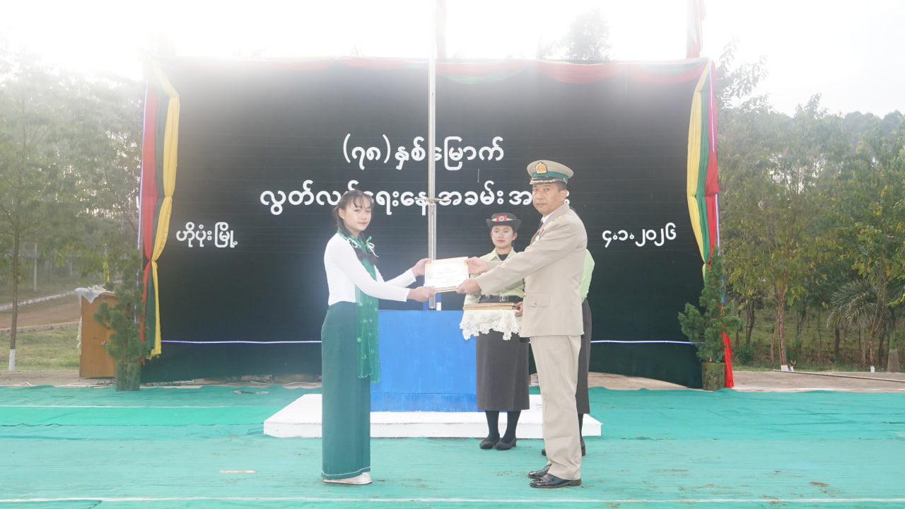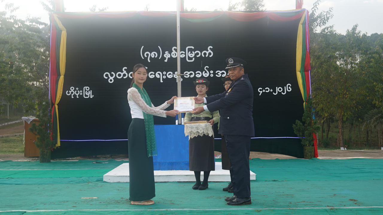 ဆက်လက်၍ ပအိုဝ်းကိုယ်ပိုင်အုပ်ချုပ်ခွင့်ရဒေသစီမံအုပ်ချုပ်ရေးအဖွဲ့ဥက္ကဋ္ဌ ဦးခွန်ရဲထွေးနှင့် အဖွဲ့ဝင်များက ဂုဏ်ပြုတပ်ခွဲနှင့် ဘင်ခရာအဖွဲ့အား ဂုဏ်ပြုဆုငွေများကိုလည်းကောင်း၊ (၇၈)နှစ်မြောက် လွတ်လပ်ရေးနေ့အထိမ်းအမှတ် အထက်တန်းအဆင့် စာစီစာကုံးပြိုင်ပွဲတွင် ပထမ၊ ဒုတိယ၊ တတိယ ဆုရရှိသော ကျောင်းသား၊ ကျောင်းသူများကိုလည်းကောင်း၊ (၇၈)နှစ်မြောက် လွတ်လပ်ရေးနေ့ အထိမ်း အမှတ် အထက်တန်းအဆင့် ကဗျာပြိုင်ပွဲတွင် ပထမ၊ ဒုတိယ၊ တတိယဆုရရှိသော ကျောင်းသား၊ ကျောင်းသူများကိုလည်းကောင်း၊ (၇၈)နှစ်မြောက် လွတ်လပ်ရေးနေ့အထိမ်းအမှတ် အလယ်တန်းအဆင့် စာစီစာကုံးပြိုင်ပွဲတွင် ပထမ၊ ဒုတိယ၊ တတိယ ဆုရရှိသော ကျောင်းသား၊ ကျောင်းသူများကို လည်းကောင်း၊ (၇၈)နှစ်မြောက် လွတ်လပ်ရေးနေ့အထိမ်းအမှတ် အလယ်တန်းအဆင့် ကဗျာပြိုင်ပွဲတွင် ပထမ၊ ဒုတိယ၊ တတိယ ဆုရရှိသော ကျောင်းသား၊ ကျောင်းသူများကိုလည်းကောင်း ဆုများအသီးသီးပေးအပ်ချီးမြှင့်ခဲ့ကြသည်။ ယင်းနောက် အခမ်းအနားသို့တက်ရောက်လာသူများအား ပြန်ကြားရေးနှင့်ပြည်သူ့ဆက်ဆံရေးဦးစီးဌာန၊ ပအိုဝ်းကိုယ်ပိုင်အုပ်ချုပ်ခွင့်ရဒေသအဆင့်ရုံးမှဝန်ထမ်းများက ပြန်ကြားရေးနှင့်ပြည်သူ့ဆက်ဆံရေးဦးစီးဌာနမှ ထုတ်ဝေသည့် (၇၈)နှစ်မြောက် လွတ်လပ်ရေးနေ့အထိမ်းအမှတ် သတင်းစကားလက်ကမ်းစာစောင်များအား ဖြန့်ဝေပေးခဲ့ကြောင်း သိရသည်။