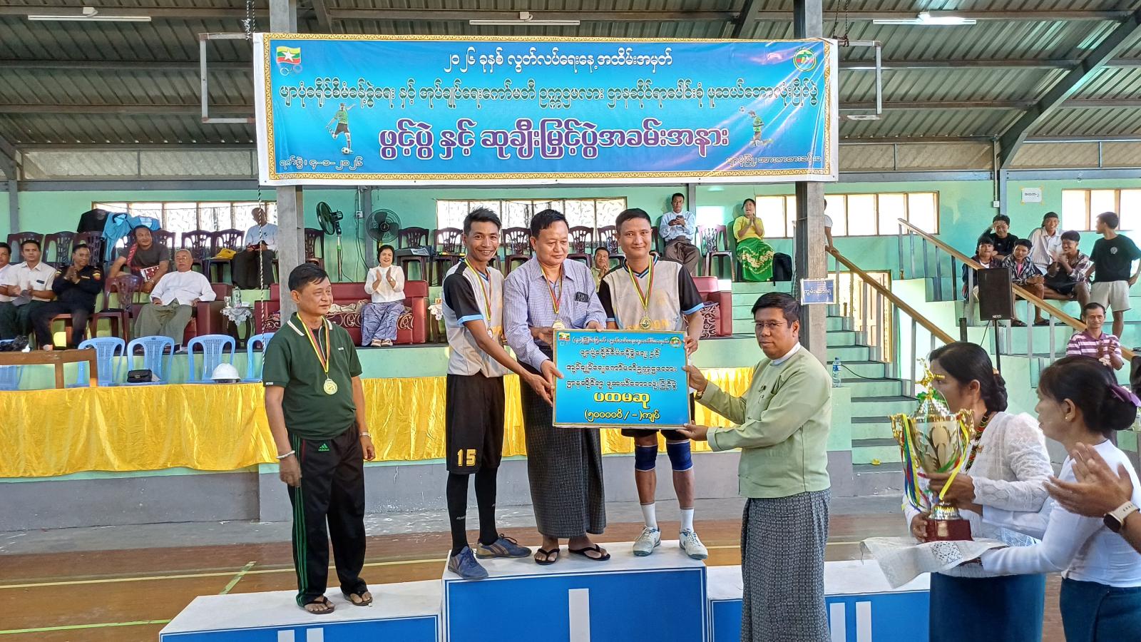 ယင်းနောက် ဆုချီးမြှင့်ပွဲကိုဆက်လက်ကျင်းပရာ ဖျာပုံခရိုင်စီမံခန့်ခွဲရေးနှင့်အုပ်ချုပ်ရေး ကော်မတီဥက္ကဋ္ဌ ဦးဇော်လွင်ဦးက ပထမဆုရ ခရိုင်ပညာရေးအသင်းအား ဆုဖလား၊ ဆုတံဆိပ်နှင့်ဆုငွေများကိုချီးမြှင့်ပြီး ဖျာပုံခရိုင်စီမံခန့်ခွဲရေးနှင့် အုပ်ချုပ်ရေးကော်မတီအဖွဲ့ဝင်းများနှင့် သက်ဆိုင်ရာတာဝန်ရှိသူများက ဒုတိယ၊ တတိယနှင့် ပွဲစဥ်တစ်လျှောက် အကောင်းဆုံးကစားသမားဆုရသူများအား ဆုများအသီးသီးပေးအပ်ချီးမြှင့်ခဲ့ကြသည်။