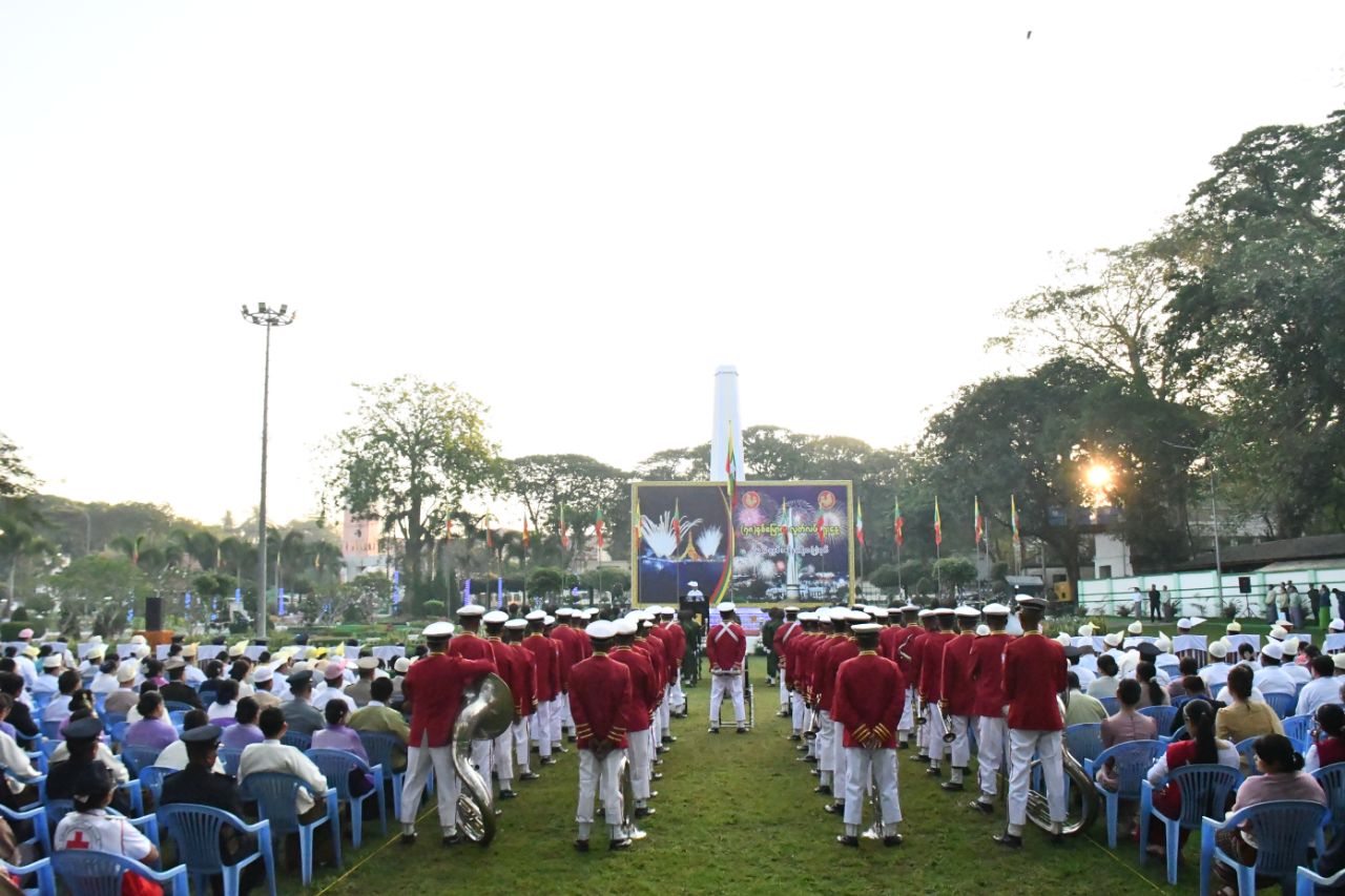 ဦးစွာ နိုင်ငံတော်အလံတင်အဖွဲ့နှင့် မြန်မာနိုင်ငံရဲတပ်ဖွဲ့ စစ်ဘင်ခရာအဖွဲ့တို့မှ ကွင်းအတွင်းနေရာယူ၍ ၂ဝ၂၆ ခုနှစ်၊ (၇၈)နှစ်မြောက် လွတ်လပ်ရေးနေ့အထိမ်းအမှတ် နိုင်ငံတော်အလံအားလွှင့်ထူခဲ့ပြီး နံနက် ၇ နာရီအချိန်တွင် ၂ဝ၂၆ ခုနှစ်၊ (၇၈)နှစ်မြောက် လွတ်လပ်ရေးနေ့အထိမ်းအမှတ် နိုင်ငံတော်အလံအလေးပြုခြင်းနှင့် သဝဏ်လွှာဖတ်ကြားခြင်းကိုကျင်းပခဲ့ရာ အရှေ့တောင်တိုင်းစစ်ဌာနချုပ်ဂုဏ်ပြုတပ်ခွဲနှင့် စစ်တီးဝိုင်းတို့က ကွင်းအတွင်းသို့ ချီတက်နေရာယူပြီးနောက် ခေတ္တပြည်နယ်ဝန်ကြီးချုပ်နှင့်တကွတက်ရောက်ကြသူများက နိုင်ငံတော်အလံအား အလေးပြုခြင်းနှင့် ကျဆုံးလေပြီးသောခေါင်းဆောင်ကြီးများအား အလေးပြုခဲ့ကြသည်။