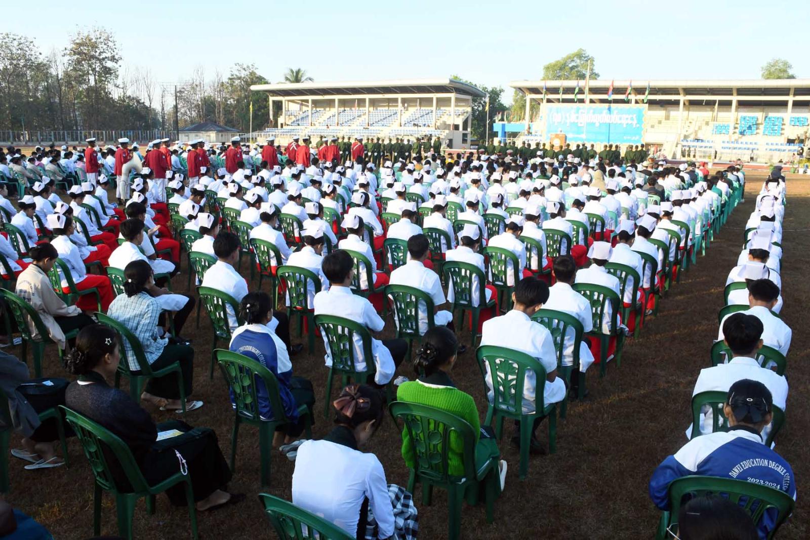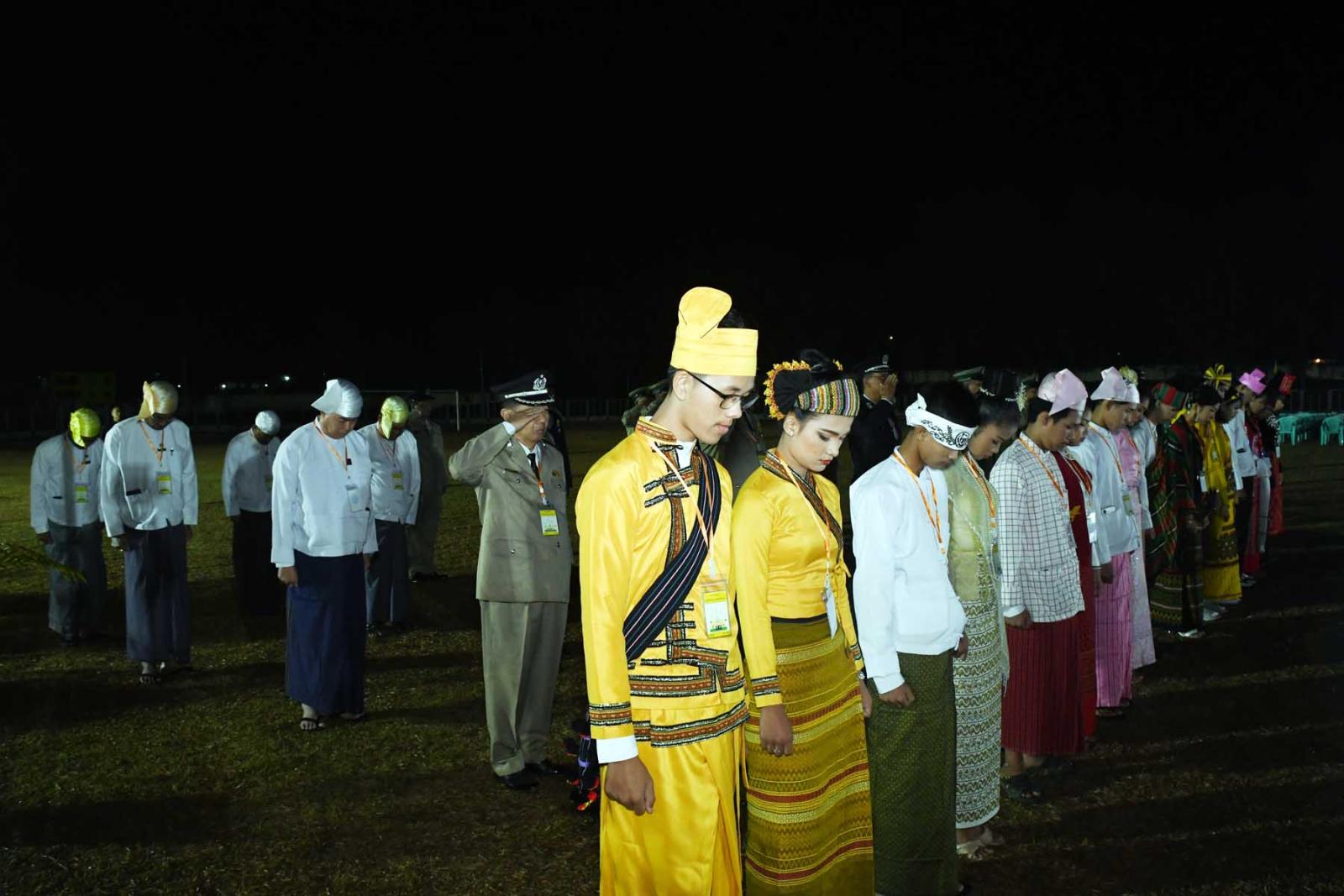 ထို့နောက် နိုင်ငံတော်အလံအလေးပြုခြင်းနှင့် သဝဏ်လွှာဖတ်ပွဲအခမ်းအနားကို နံနက် ၇ နာရီတွင် ဆက်လက်ကျင်းပရာ တိုင်းဒေသကြီးဝန်ကြီးချုပ်၊ တိုင်းဒေသကြီးတရားလွှတ်တော်တရားသူကြီးချုပ်၊ တိုင်းဒေသကြီးဝန်ကြီးများ၊ ကမ်းရိုးတန်းဒေသတိုင်းစစ်ဌာနချုပ် ဒုတိယတိုင်းမှူး၊ အရာရှိစစ်သည်များ၊ ငြိမ်းချမ်းရေးအဖွဲ့အစည်းများ၊ ဌာနဆိုင်ရာများ၊ လူမှုရေးအဖွဲ့များ၊ ဆရာ၊ ဆရာမများ၊ ကျောင်းသား၊ ကျောင်းသူများ၊ ဒေသခံပြည်သူများ စုစုပေါင်း (၆၀၀)ဦးခန့် တက်ရောက်ခဲ့ကြသည်။
