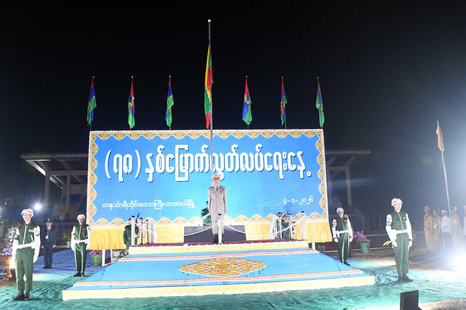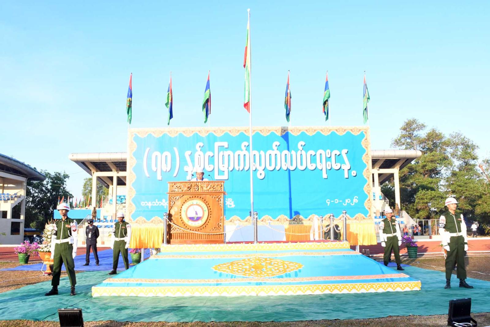 (၇၈)နှစ်မြောက် လွတ်လပ်ရေးနေ့နိုင်ငံတော်အလံတင်အခမ်းအနား၊ နိုင်ငံတော်အလံအလေးပြုခြင်းနှင့် သဝဏ်လွှာဖတ်ပွဲအခမ်းအနားကို ယနေ့နံနက်ပိုင်းက တနင်္သာရီတိုင်းဒေသကြီး၊ ထားဝယ်မြို့၊ ရွှေဝယ်သီရိအားကစားကွင်း၌ ကျင်းပခဲ့သည်။