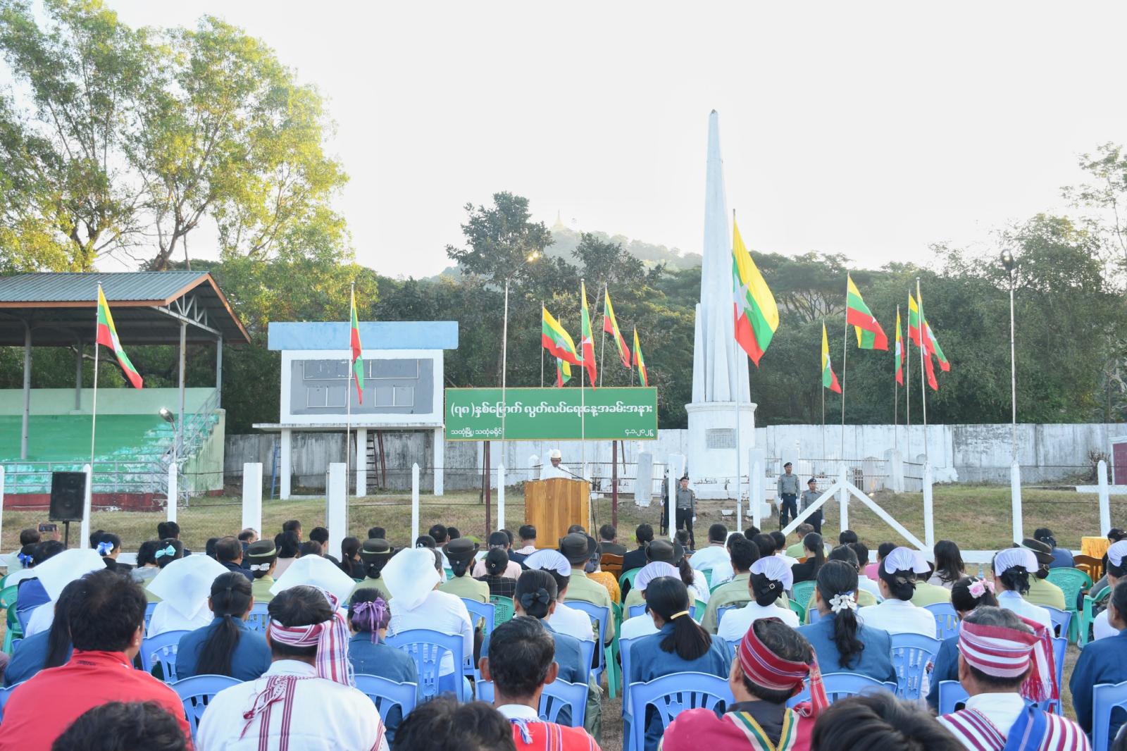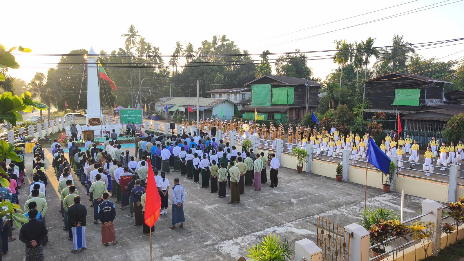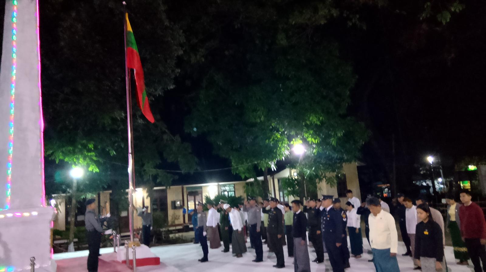 ရှေးဦးစွာ မြို့နယ်အသီးသီးရှိ အလံတင်အခမ်းအနား ကျင်းပရာနေရာများ၌ နံနက် ၄ နာရီ ၂၀ မိနစ်တွင် ကျင်းပရာ နိုင်ငံတော်အလံအား ရဲတပ်ဖွဲ့ဝင်များကအလံတိုင်ထိပ်သို့လွှင့်တင်ခဲ့ကြပြီး နိုင်ငံတော်အလံအား ခရိုင်/မြို့နယ်စီမံခန့်ခွဲရေးနှင့်အုပ်ချုပ်ရေးကော်မတီဥက္ကဋ္ဌများနှင့်အဖွဲ့ဝင်များ၊ ရဲတပ်ဖွဲ့ဝင်များ၊ ဌာနဆိုင်ရာအကြီးအကဲများနှင့်ဝန်ထမ်းများ၊ မီးသတ်နှင့်ကြက်ခြေနီသူနာပြုတပ်ဖွဲ့ဝင်များ၊ အသင်းအဖွဲ့များမှပုဂ္ဂိုလ်များက စုပေါင်းအလေးပြုကြသည်။