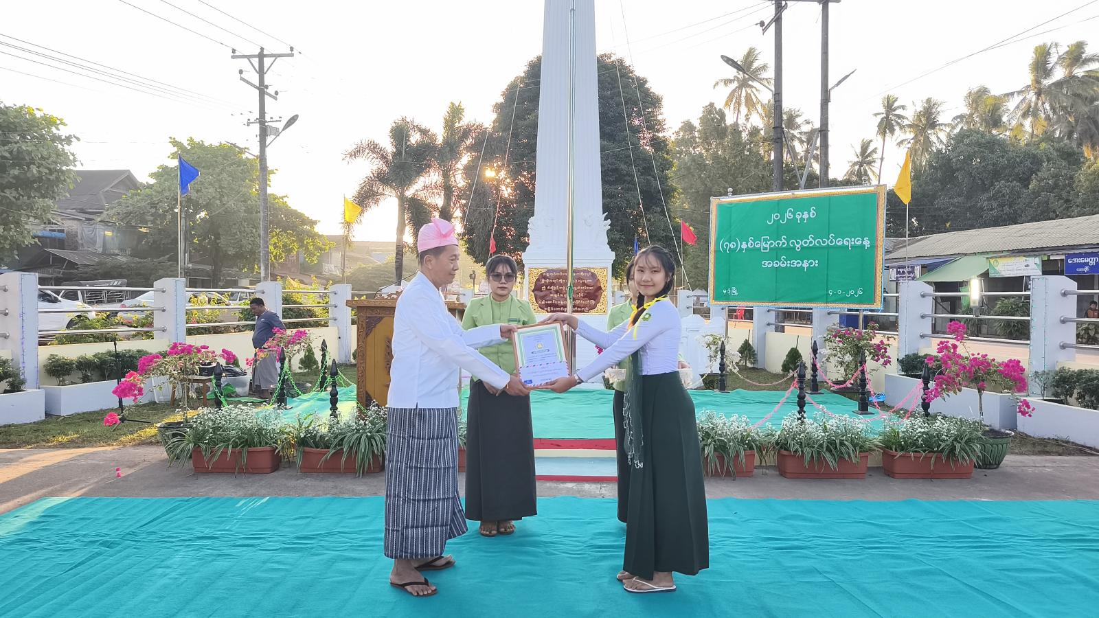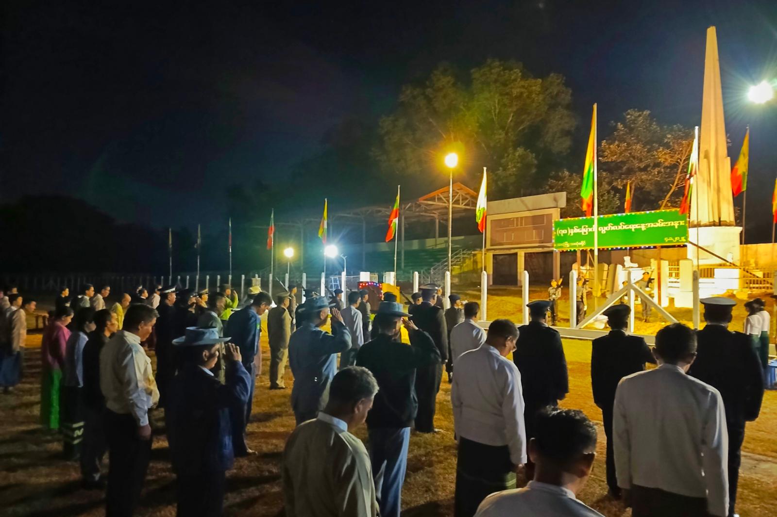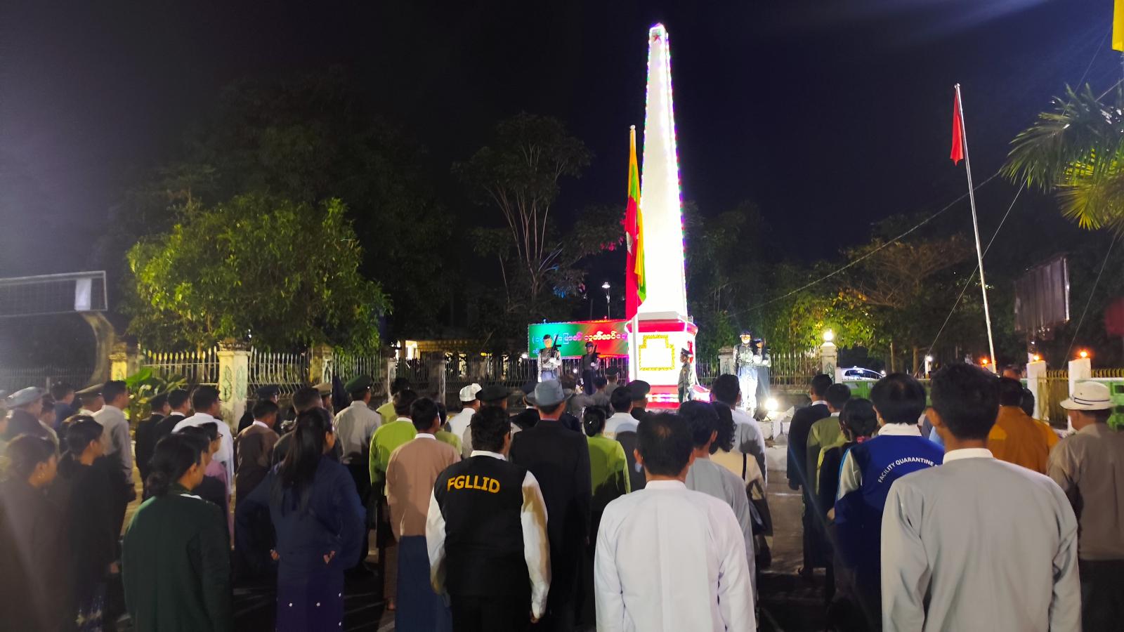 ရှေးဦးစွာ မြို့နယ်အသီးသီးရှိ အလံတင်အခမ်းအနား ကျင်းပရာနေရာများ၌ နံနက် ၄ နာရီ ၂၀ မိနစ်တွင် ကျင်းပရာ နိုင်ငံတော်အလံအား ရဲတပ်ဖွဲ့ဝင်များကအလံတိုင်ထိပ်သို့လွှင့်တင်ခဲ့ကြပြီး နိုင်ငံတော်အလံအား ခရိုင်/မြို့နယ်စီမံခန့်ခွဲရေးနှင့်အုပ်ချုပ်ရေးကော်မတီဥက္ကဋ္ဌများနှင့်အဖွဲ့ဝင်များ၊ ရဲတပ်ဖွဲ့ဝင်များ၊ ဌာနဆိုင်ရာအကြီးအကဲများနှင့်ဝန်ထမ်းများ၊ မီးသတ်နှင့်ကြက်ခြေနီသူနာပြုတပ်ဖွဲ့ဝင်များ၊ အသင်းအဖွဲ့များမှပုဂ္ဂိုလ်များက စုပေါင်းအလေးပြုကြသည်။