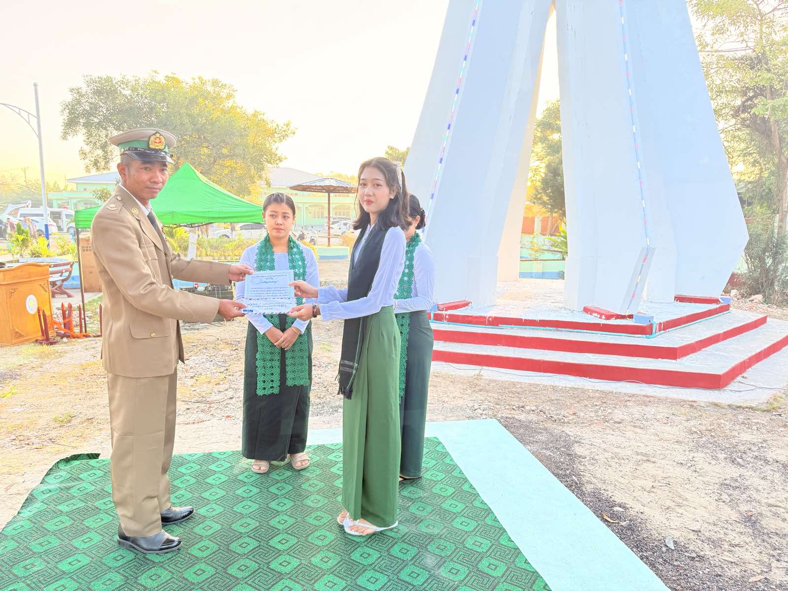 ၎င်းနောက် (၇၈)နှစ်မြောက် လွတ်လပ်ရေးနေ့အထိမ်းအမှတ်အဖြစ် မြို့နယ်အခြေခံပညာဦးစီးဌာနမှ ကြီးမှူးကျင်းပခဲ့သော အခြေခံပညာ အလယ်တန်း၊ အထက်တန်း၊ စာစီစာကုံးပြိုင်ပွဲနှင့် ကဗျာပြိုင်ပွဲများတွင် ဆုရရှိသော ကျောင်းသား၊ ကျောင်းသူများအား မြို့နယ်စီမံခန့်ခွဲရေးနှင့်အုပ်ချုပ်ရေးကော်မတီဥက္ကဋ္ဌ ဦးဗိုလ်အောင်မောင်မောင်၊ အဖွဲ့၀င် (၁) ဗိုလ်မှူးပြည့်ဖြိုးအောင်နှင့်အဖွဲ့၀င်များက ဆုများအသီးသီးပေးအပ် ချီးမြှင့်ခဲ့ကြောင်း သိရပြီး မြို့နယ်ပြန်ကြားရေးနှင့်ပြည်သူ့ဆက်ဆံရေးဦးစီးဌာနမှ ဝန်ထမ်းများက ပြန်ကြားရေးနှင့်ပြည်သူ့ဆက်ဆံရေးဦးစီးဌာနမှ (အခမဲ့)ထုတ်ဝေသော (၇၈)နှစ်မြောက် လွတ်လပ်ရေးနေ့အထိမ်းအမှတ် သတင်းစကားလက်ကမ်းစာစောင်များကို တက်ရောက်လာသူများအား (အခမဲ့) ဖြန်ဝေပေးခဲ့ကြောင်း သိရသည်။