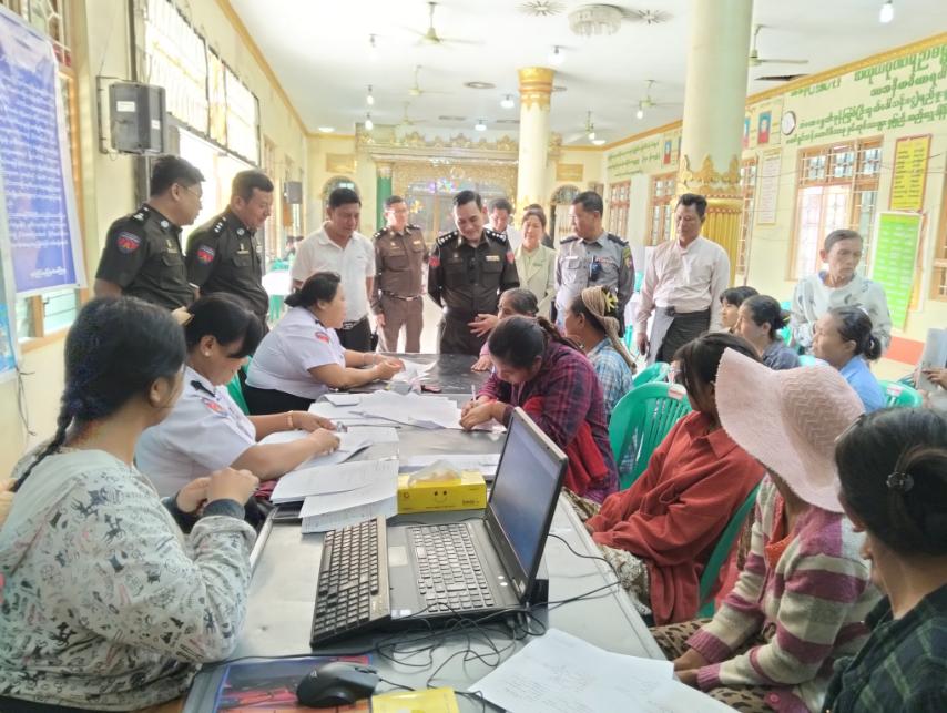 ပြည်ကြီးတံခွန်မြို့နယ် (စ)ရပ်ကွက်၌ ပန်းခင်းစီမံချက်(၃)ဖြင့် နိုင်ငံသားစိစစ်ရေးကတ်ပြား ပျောက်ဆုံး၊ ပျက်စီးမိတ္တူ ထုတ်ပေးခြင်း ကွင်းဆင်းဆောင်ရွက်